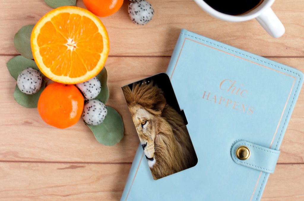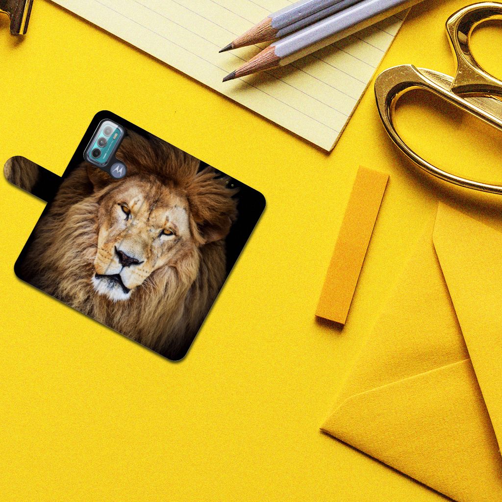 Motorola Moto G60 Telefoonhoesje met Pasjes en met magnetische sluitclip Leeuw