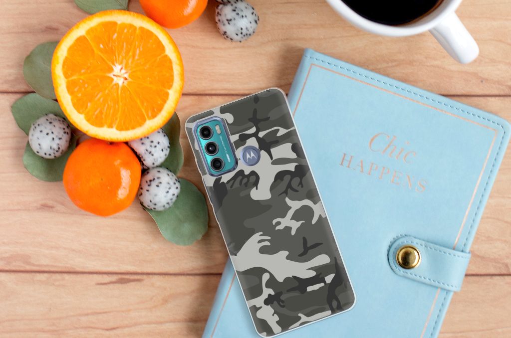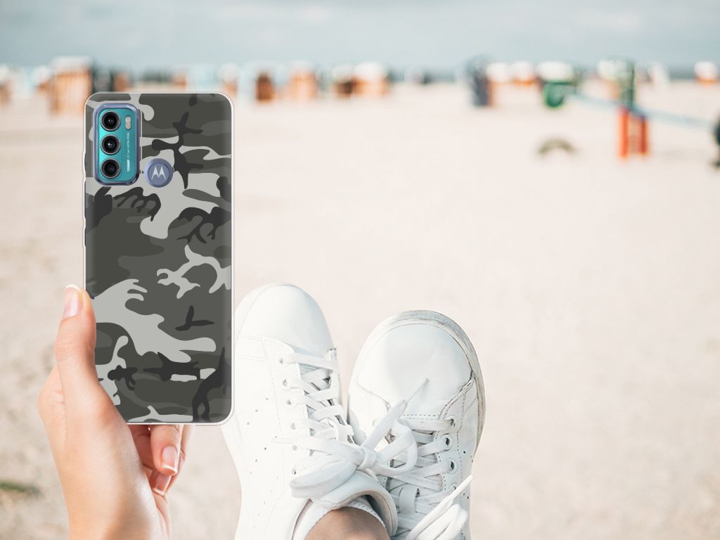 Heb je affiniteit met het leger, dan zal dit telefoonhoesje je zeker bevallen. De Motorola Moto G60 TPU bumper beschikt namelijk over een Army Light print. Camouflage kleding wordt vaak gedragen door mensen die zich graag willen mengen in of met hun omgeving. Dit camouflage hoesje is er dan ook voornamelijk in kleuren die in de natuur voorkomen, zodat je één wordt met je achtergrond. Het design staat op een TPU case. Dit hoesje wordt alleen aan de bovenkant bedrukt en is zeer flexibel. De randen van het hoesje blijven transparant. Beschermt het leger volk en vaderland, dit hoesje in donkere camouflage kleuren zal jouw telefoon onder alle omstandigheden schadevrij houden. Met een leger hoesje in dit soort kleuren zal je niet zo snel opvallen, maar waarschijnlijk ben je daar ook niet naar op zoek. Wel is het een hele stoere case.
