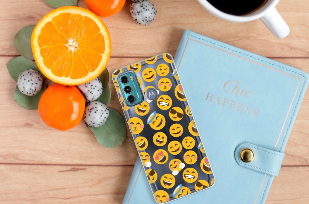 Je gebruikt ze waarschijnlijk dagelijks: emoji’s. Daarom hebben we besloten ze op een design hoesje te zetten. De kleurrijke, vaak gele emoticons maken chatberichten net wat spontaner. Dat hebben we allemaal te danken aan Japan, waar de emoji’s die we zo goed kennen vandaan komen. Ondertussen zijn er meer dan 1800! Deze passen natuurlijk niet allemaal op een Motorola Moto G60 TPU bumper, maar we hebben de meeste gebruikte exemplaren erop gezet. Deze tpu case is voorzien van opstaande randen zodat het touchscreen van je telefoon beter is beschermd. Super handig. Het TPU zelf is zeer flexibel en is op maat gemaakt. We gebruiken emoji’s vaak om complete woorden te vervangen. Dit smartphone hoesje zegt dan ook meer dan duizend woorden kunnen. De tpu case wordt alleen aan de bovenzijde bedrukt met emoji’s. De zijkanten van de case worden niet bedrukt en blijven transparant.