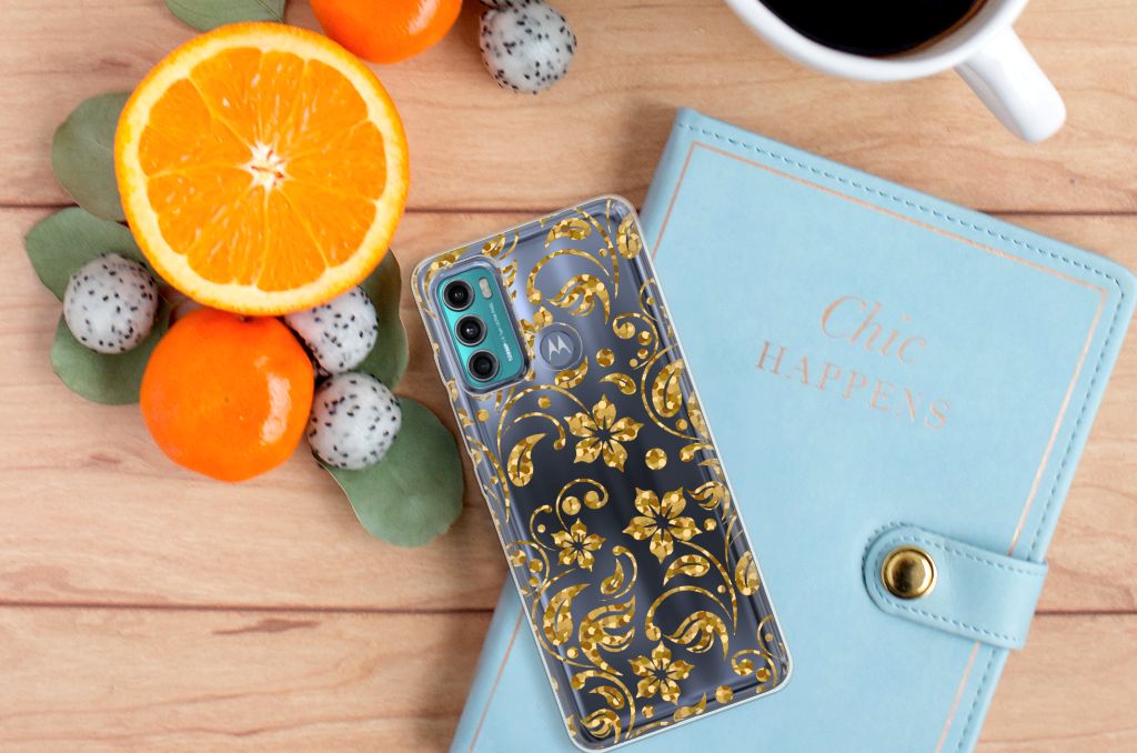 Ben je op zoek naar een uniek telefoonhoesje voor je Motorola Moto G60? Dan ben je bij B2C Telecom aan het juiste adres! Speciaal voor jou hebben we dit prachtige Gouden Bloemen design in onze collectie hoesjes opgenomen. Het design wordt bedrukt op een TPU Case en is gemaakt van flexibel rubber. Het design wordt alleen aan de bovenkant van het hoesje bedrukt en de randen blijven transparant. Aan de zijkanten zijn uitsparingen gemaakt waardoor je met gemak alle knoppen en poorten kunt bedienen. Wij adviseren om dit hoesje in combinatie met een screenprotector te gebruiken voor een langere levensduur van je telefoon. Wil je dit design hoesje nog iets extra's geven? Voeg dan gratis je naam of een quote toe! Is dit design hoesje toch niet helemaal wat je zocht? Ontwerp dan zelf een hoesje in ons ontwerpprogramma.
