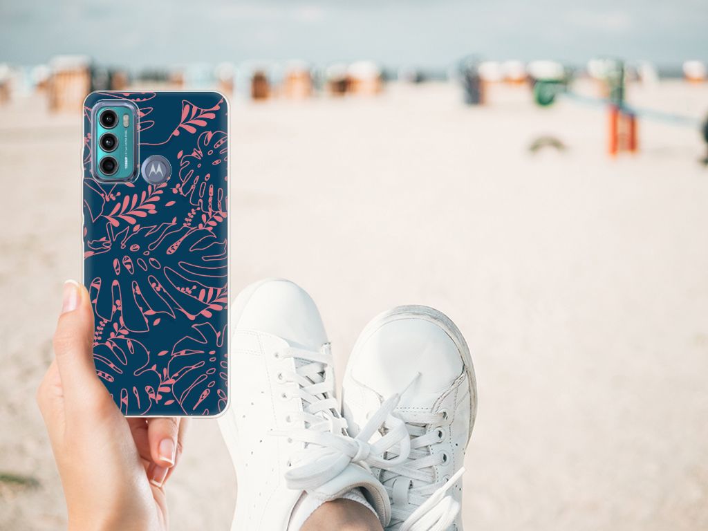 Je voelt je verbonden met de natuur als je kiest voor deze Motorola Moto G60 TPU Case met print van roze bladeren op een blauwe achtergrond. De print bestaat uit verschillende roze bladeren en dit zorgt voor een fraai decoratief geheel. Met dit patroon van roze bladeren op een blauwe achtergrond creëer je een opvallende uitstraling voor jouw smartphone. Jij doet er verstandig aan om je telefoon te beschermen met dit design hoesje met roze bladeren op een blauwe achtergrond, die staan op een tpu case. Dit tpu hoesje kenmerkt zich onder meer door de opstaande randen aan de voorzijde, waardoor bij een val van de smartphone het scherm de grond niet raakt. Voel jij jezelf happy bij een beeld van roze bladeren op een blauwe achtergrond, dan is deze tpu case met print een uitstekende optie. Het beschermt jouw telefoon aan de achterkant en zijkanten zeer goed. Het TPU is zeer flexibel en onbreekbaar. De zijkanten van de case blijven transparant.