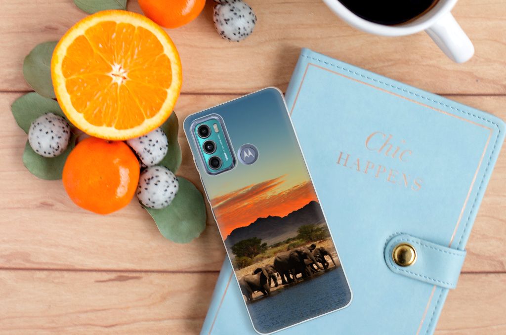 Dit hoesje is zo sterk als een olifant. Dat is goed nieuws, want jouw telefoon heeft een zeer goede bescherming nodig. Dat krijg je met dit design hoesje met print van Olifanten. De Afrikaanse olifant, het allergrootste landdier ter wereld, heeft waarschijnlijk het meest te lijden gehad van stroperij om het ivoor. Deze dieren verdienen dus een goede bescherming, net als jouw smartphone. Met een Motorola Moto G60 TPU Hoesje met olifant erop krijg je dit zeker voor elkaar. De tpu case beschermt vooral de achterkant en zijkanten van je telefoon en is gemaakt van onbreekbaar materiaal. De sterke olifant komt zeer goed tot zijn recht op deze case, die zeer flexibel is. Alleen de bovenzijde van de case wordt bedrukt met olifanten, de zijkanten blijven transparant.