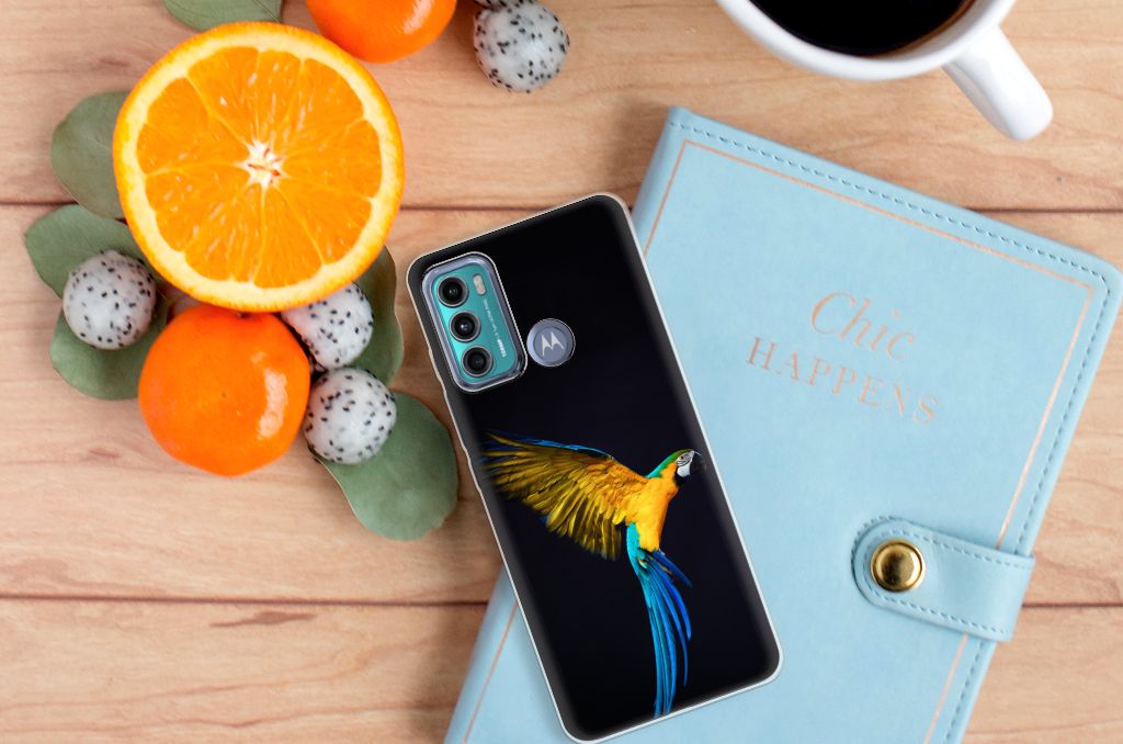 Dit design hoesje met Papegaai tegen een zwarte achtergrond is een zeer flexibele bescherming voor jouw smartphone. Dit komt vooral omdat deze print op een tpu case staat. Dit is een zeer buigzaam hoesje, dat de telefoon vooral aan de achterkant en zijkanten beschermt. De bovenkant van de Motorola Moto G60 TPU Hoesje wordt bedrukt met deze schitterende print. De zijkanten blijven doorzichtig. Papegaaien zijn erg sociale vogels die voldoende aandacht en gezelschap nodig hebben. Als je er voor kiest om een papegaai aan te schaffen, is het een goed idee om een koppeltje te nemen. Koop je meerdere tpu cases met een papegaai, dan ga je automatisch minder betalen per hoesje. Wij hanteren een systeem van bundelkorting. Dus koop dit hoesje met opstaande randen voor een spotprijs.