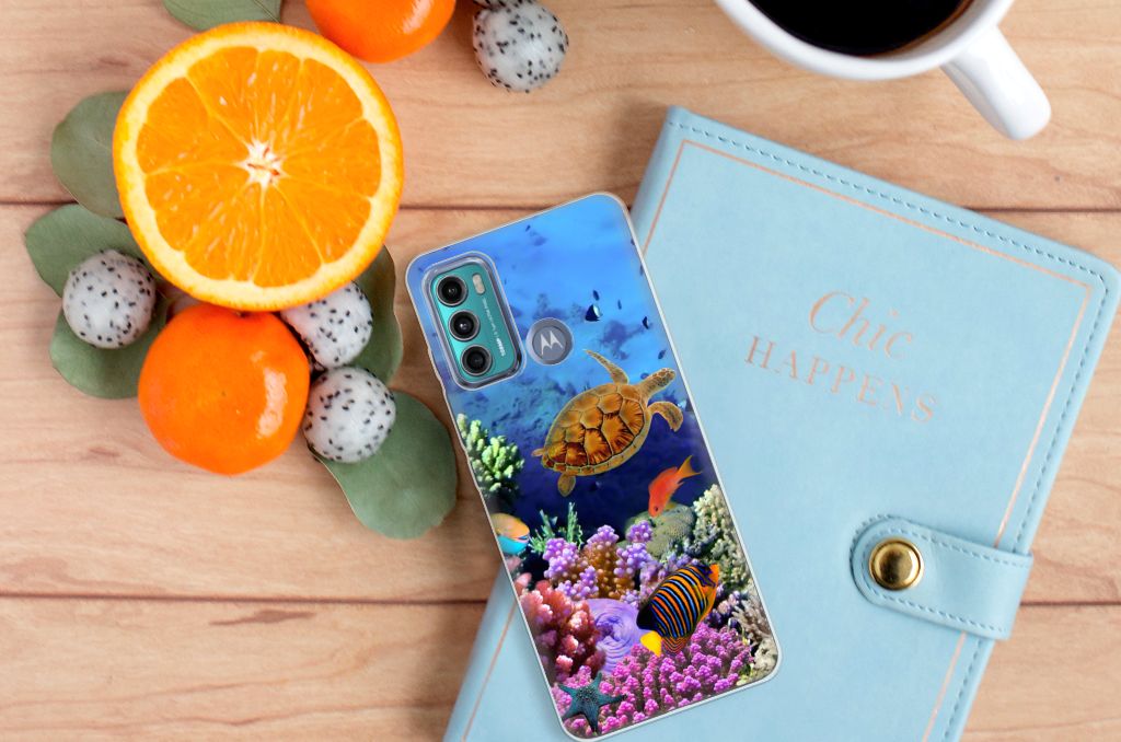 Dit kleurrijke hoesje met tropische Vissen is een ware eyecatcher. Als je aan het duiken bent en je treft een school aan met dit soort opvallende vissen, dan heb je een geweldige ervaring. Maar je hoeft er eigenlijk niet per se het water voor in te duiken. Want wij hebben een schitterende verzameling vissen op dit design hoesje gezet. Met onze zeer geavanceerde printer zetten we de afbeelding van vissen op de bovenkant van de Motorola Moto G60 TPU Hoesje, de randen blijven transparant. De case is gemaakt van zeer elastisch en onbreekbaar materiaal. Verder is je telefoon natuurlijk goed beschermd met deze tpu case met print van vissen. Deze case heeft tevens opstaande randen, waardoor je scherm de grond niet zal raken als de smartphone uit je handen valt.