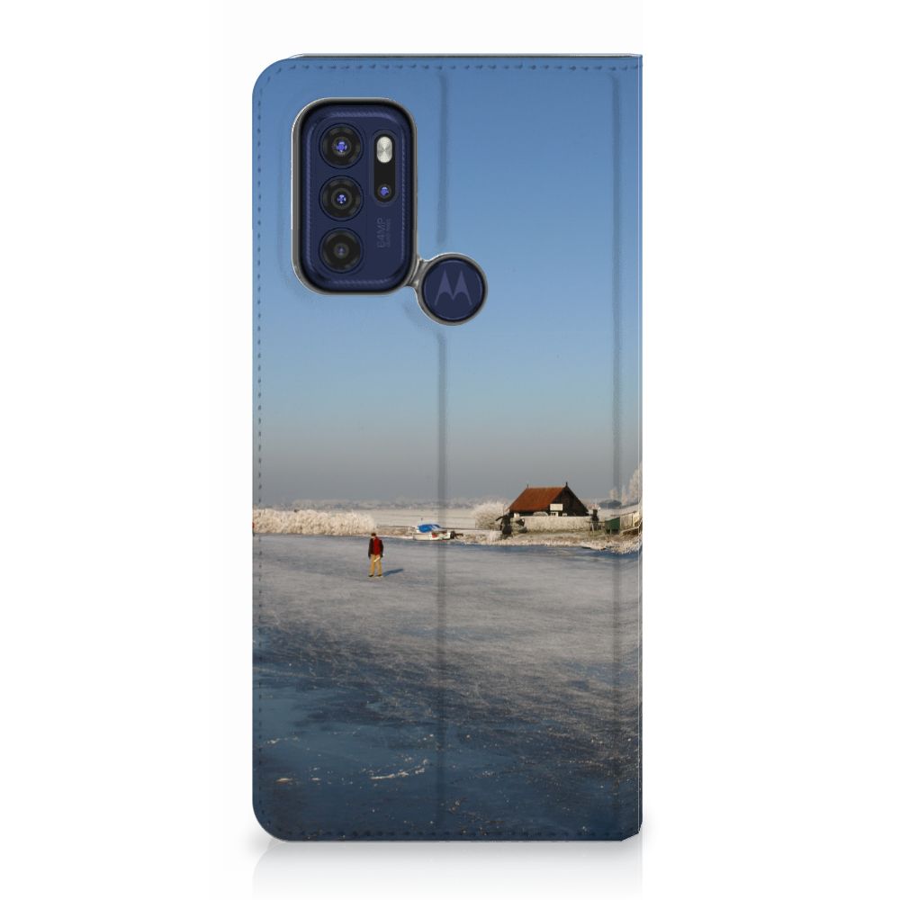 Deze mooie Motorola Moto G60s Book Cover met schaatsers is een typisch Hollands product. Schaatsen is een van de oudste Nederlandse volkssporten en wordt van jongs af aan geleerd. Hoewel schaatsen ook in andere landen van het noordelijk halfrond in trek is, met name in Scandinavië (Zweden, Finland, Noorwegen), blinken Nederlanders er pas echt in uit. Mocht jij met dit hoesje met schaatsers in het buitenland aankomen zetten, dan is het meteen duidelijk waar je vandaan komt. Deze stand case is perfect op maat gemaakt en heeft een vakje voor een pasje of briefgeld. Daarnaast is de magneet aan de binnenkant zeer handig. Alle zijden van de case worden bedrukt met schaatsers en de houder aan de binnenzijde is van tpu. Dit is erg flexibel materiaal. De case heeft ook een standaard.