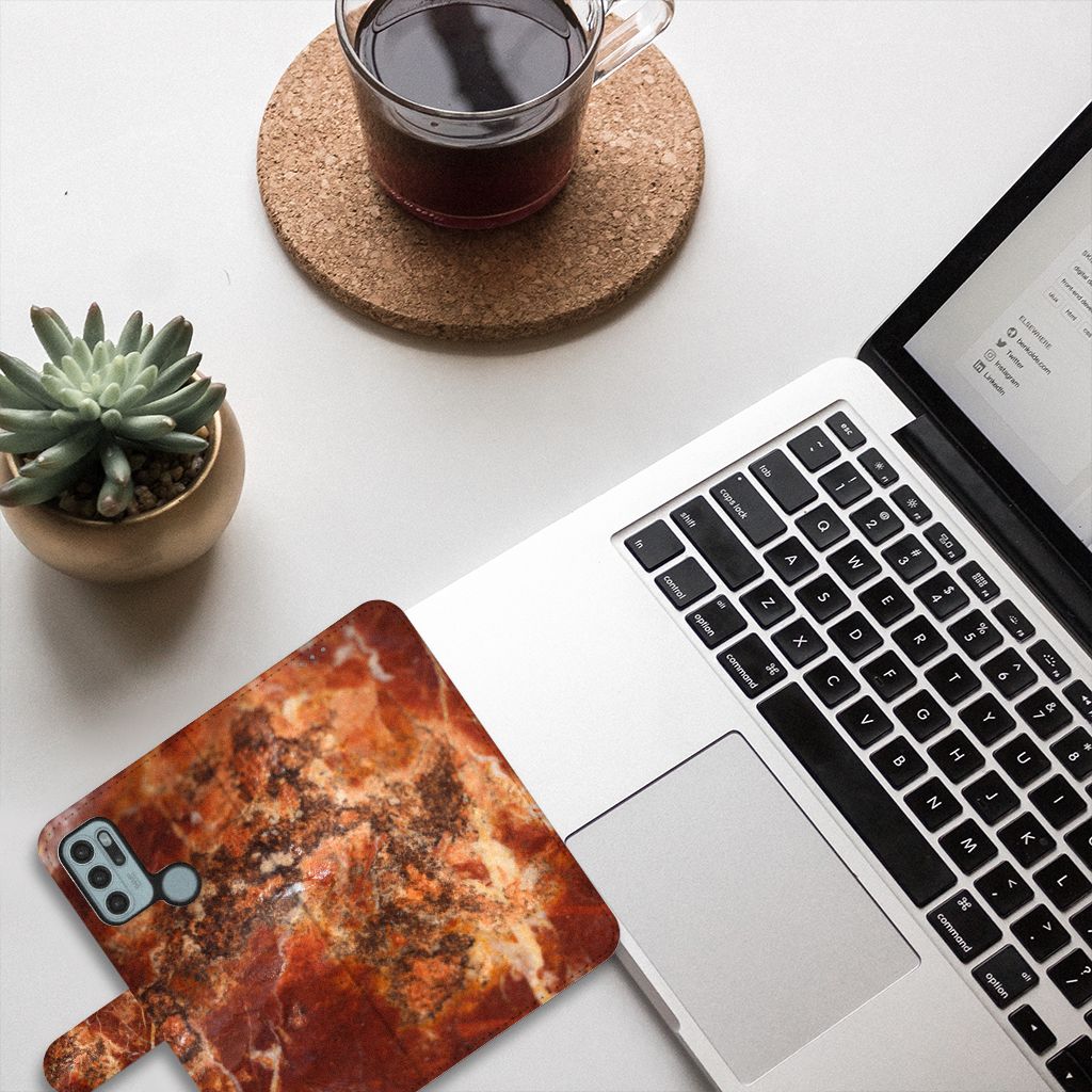 Zelden zie je een telefoonhoesje met een kleurenspektakel zoals deze. Als je een beetje artistiek bent ingesteld dan zul je dit hoesje zeker gaan waarderen. Het bruine marmer wordt niet vaak gebruikt, maar zoals je ziet is het een stuk kleurrijker dan bijvoorbeeld het bekendere wit of grijs marmer. Marmer is een natuursteen, elk stuk marmer heeft dus zijn eigen patronen. Dit maakt het ook een uniek hoesje. Ook is deze Motorola Moto G60s Bookcase net zo sterk als marmer. De houder van TPU-siliconen en de buitenkant van kunstleer houden jouw telefoon uitermate veilig als hij per ongeluk uit je handen glipt. We weten allemaal dat dit nog wel eens een keer wil gebeuren en dan wil je wel dat hij intact blijft.