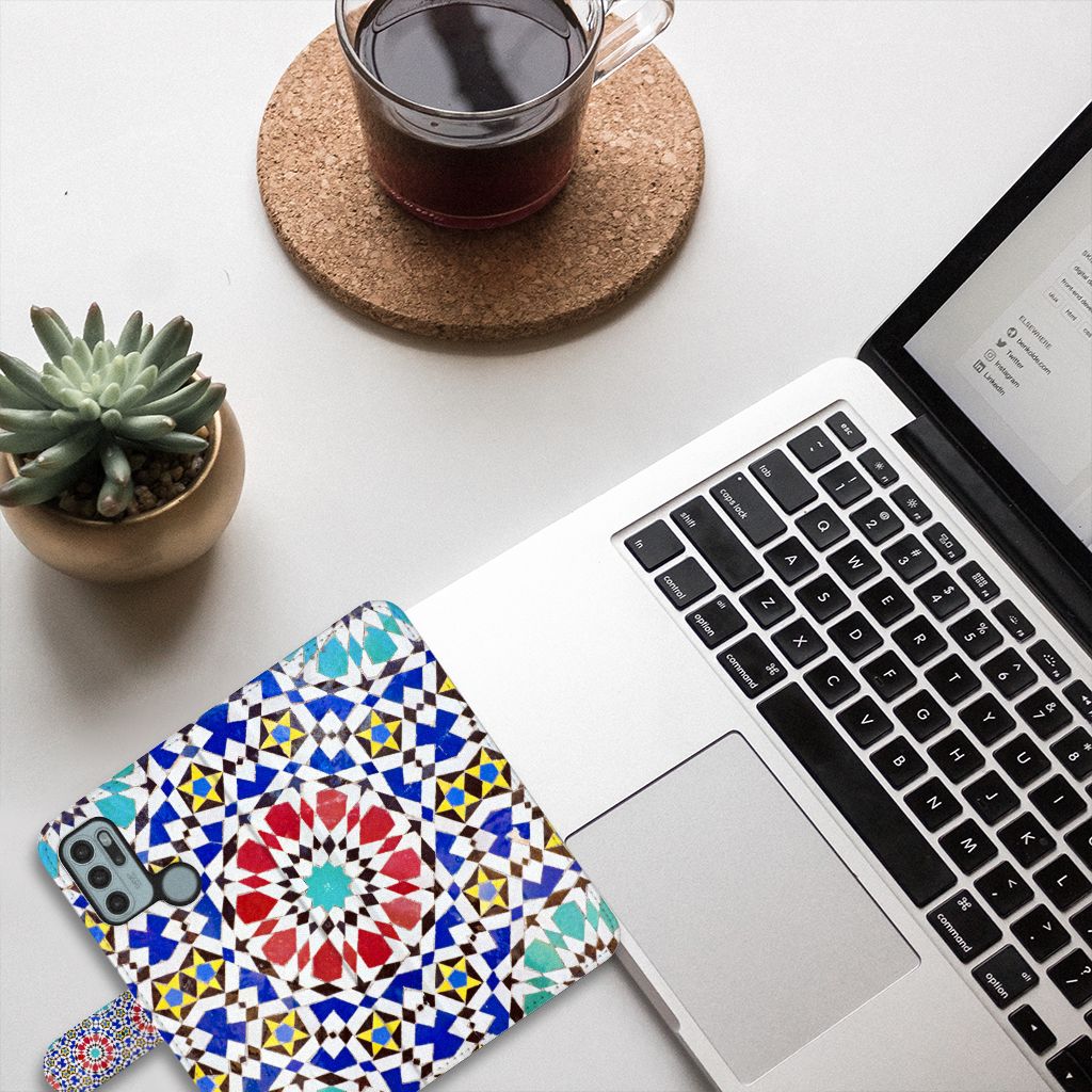 Aan design hoesjes met kunstvormen geen gebrek in onze uitgebreide collectie. Wat dacht je van dit design hoesje met Mozaïek . Dit is een kunstvorm waarbij een grote afbeelding wordt gemaakt uit een groot aantal kleine gekleurde steentjes (tesserae), die in een vloer of wand worden gemetseld. Deze gekleurde steentjes zie je terug op dit boekhoesje met design van mozaïek. Een boekhoesje is zo’n beetje de veiligste case die er bestaat. Een Motorola Moto G60s Bookcase met print zorgt voor een volledige bescherming van je smartphone en wordt aan alle zijden bedrukt met mozaïek. Een deel van de foto’s staat ook op het lipje aan de buitenzijde. Verder is de houder aan de binnenzijde van TPU. De Grieken en Romeinen beheersten de kunst al. Op diverse plaatsen in Europa zijn mozaïeken teruggevonden die tot op de dag van vandaag goed bewaard zijn gebleven. Met een hoesje met mozaïek blijft jouw telefoon in tact. Je pasjes en briefgeld kun je in de vakjes aan de binnenzijde stoppen