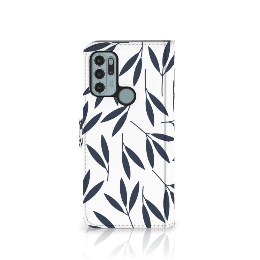 Motorola Moto G60s Hoesje met magnetische lipje als sluiting Leaves Blue