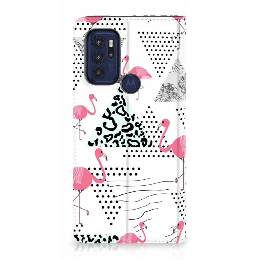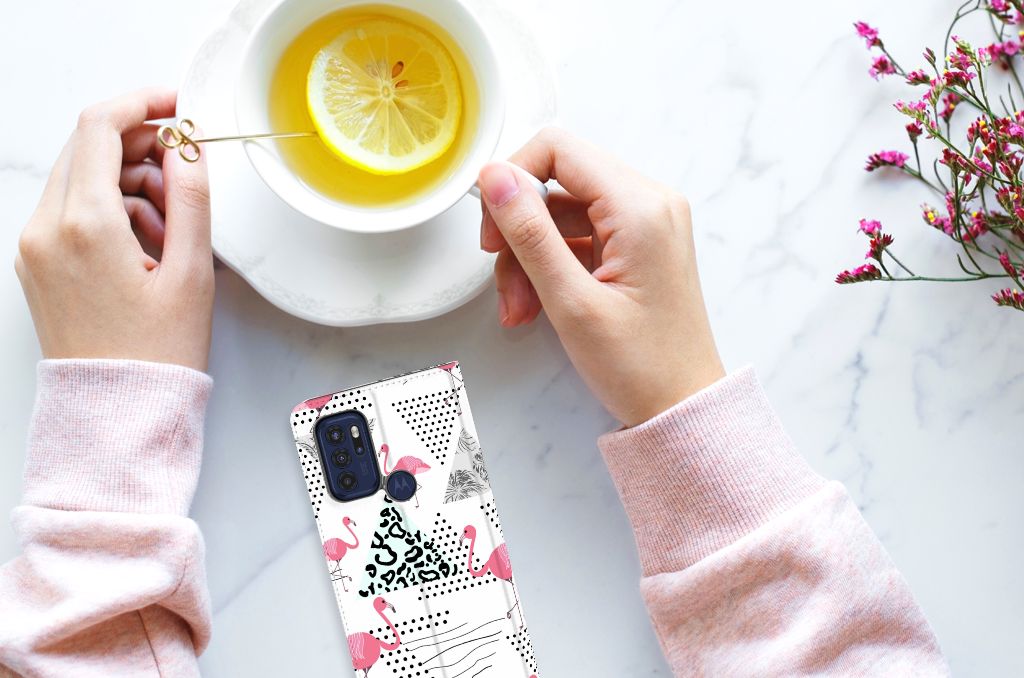 Een Motorola Moto G60s Hoesje maken met Flamingo Triangle is in vele opzichten bijzonder. De rode flamingo op het hoesje komt oorspronkelijk uit het Caraïbische gebied. Stel dat je in deze regio vakantie viert, dan val je zonder meer op met dit hoesje met flamingo’s en driehoeken. Deze stand case biedt bescherming voor alle zijden van je telefoon. Jouw smartphone ligt goed opgeborgen in de TPU houder aan de binnenzijde en in dit gedeelte van het hoesje met flamingo’s en driehoeken zit de magnetische sluiting. Ook de palmbomen op deze stand case bieden het ultieme vakantiegevoel. De stand case met flamingo’s en driehoeken heeft vakjes voor pasjes en is op maat gemaakt.