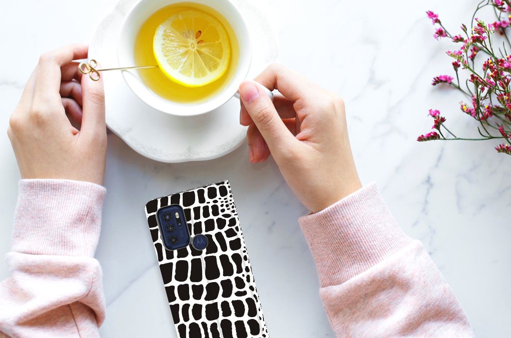 Deze stand case met zwarte en witte Slangenprint kunnen wij zeer exclusief noemen. Zeker als je er nog een bijzondere tekst van jezelf aan toevoegt, zoals je eigen naam in een sierletter. Jouw stand case krijgt dan een persoonlijke uitstraling, net nog een beetje specialer dan dit hoesje met zwarte en witte slangenprint. Wat niets afdoet van de exclusiviteit van deze stand case met zwarte en witte slangenprint. Ben jij toe aan een stoer en opvallend Motorola Moto G60s Hoesje maken? Pak dan dit design met print van slangenhuid als basis. Het stand hoesje met zwarte en witte slangenprint is van PU-leer (buitenzijde) en TPU (binnenzijde) en beschikt over een houder en een standaard. Verder is dit stand hoesje met slangenprint voorzien van een magnetische sluiting aan de binnenkant. Jij bent ervan verzekerd dat jouw smartphone tegen een stootje kan met dit stand hoesje met zwarte en witte slangenprint.