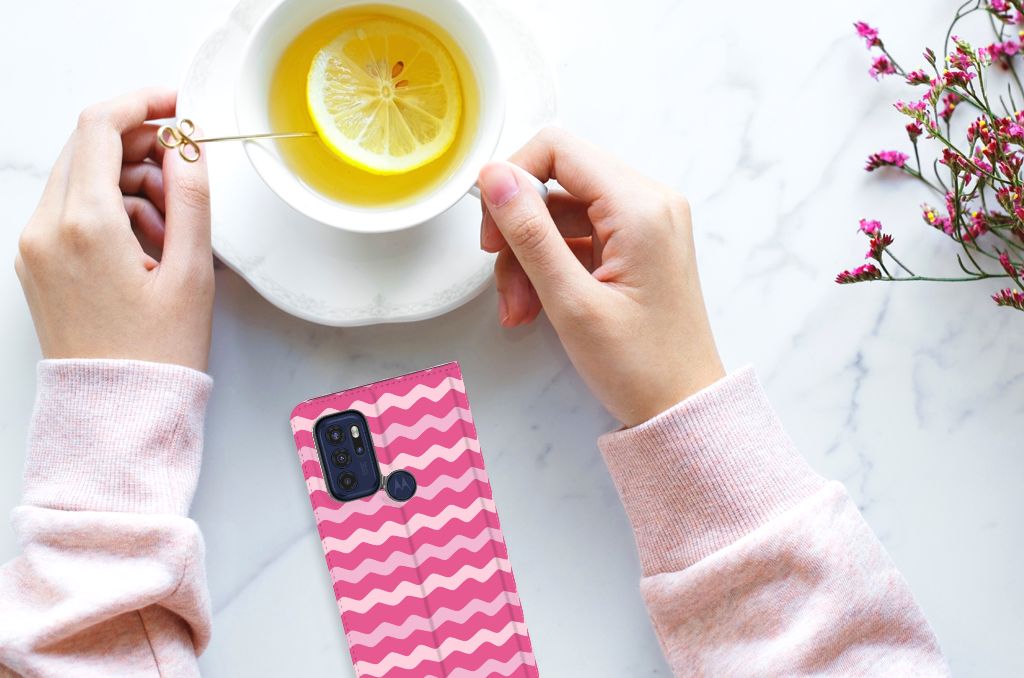 Dit design hoesje met roze golven is speciaal op maat gemaakt voor jouw telefoon. We hebben verschillende kleurstellingen gebruikt in het design, zodat de case er spannend en leuk uitziet. Dit roze hoesje met verschillende soorten golven ziet er opwindend uit. Het Motorola Moto G60s Hoesje met Magneet wordt in ons eigen magazijn bedrukt, vandaar dat we de kosten zeer laag kunnen houden. Wij kunnen het duurzame hoesje met Waves Pink zeer snel leveren. Heb jij altijd al een design hoesje met verschillende soorten roze willen hebben? De stand case met roze golven beschermt jouw telefoon aan alle kanten en beschikt over een 1 opbergvakje en een speciale standaard. Het roze hoesje wordt afgesloten met een magneet aan de binnenzijde. De houder aan de binnenzijde van de case in verschillende soorten roze is van het flexibele TPU. Alle zijden van de roze stand case worden bedrukt.