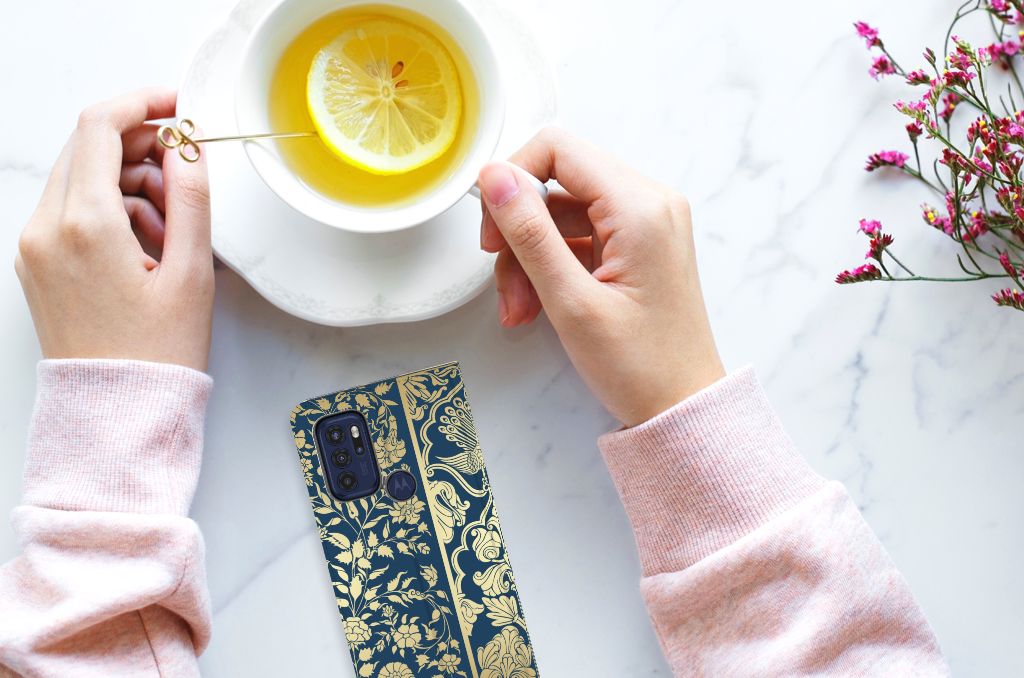 Dit koninklijke hoesje met Beige Flowers ziet er oogverblindend uit. De beige kleur geeft dit design hoesje een super fraai en chique uiterlijk. Je voelt jezelf de koning te rijk als je jouw telefoon beschermt met deze elegante case. De donkerblauwe achtergrond geeft dit design hoesje extra uitstraling en combineert goed met beige. Het hoesje ziet er zeer kostbaar uit, maar is erg goedkoop. Voor een zeer bescheiden bedrag ben je in het bezit van dit design hoesje. De case geeft jou en je smartphone extra status. Voor goedkope design hoesjes zit je goed bij B2C Telecom. Het design staat op een stand case. Deze case beschermt jouw Motorola Moto G60s aan alle kanten en beschikt over een 1 opbergvakje en een speciale standaard. Het Smart Cover wordt afgesloten met een magneet aan de binnenzijde. De houder aan de binnenzijde is van TPU. Alle zijden van de stand case worden bedrukt.