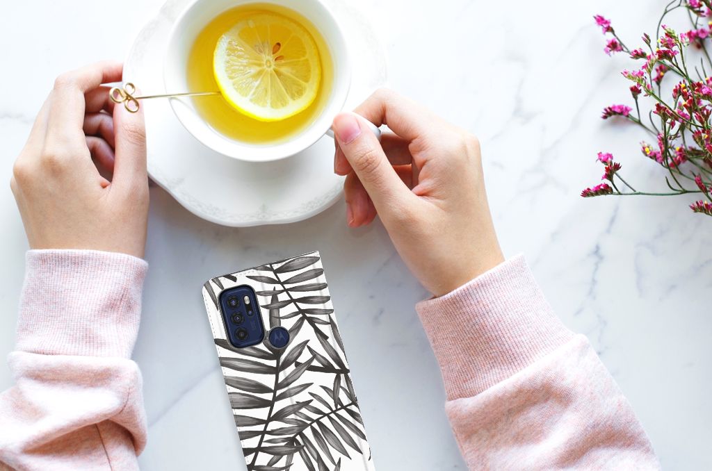 Ben je op zoek naar een uniek telefoonhoesje voor je Motorola Moto G60s? Dan ben je bij B2C Telecom aan het juiste adres! Speciaal voor jou hebben we dit prachtige Leaves Grey design in onze collectie hoesjes opgenomen. Het design wordt bedrukt op een Smart Cover en heeft een vakje aan de binnenkant voor een pasje. Het fijne aan dit hoesje is dat je het als standaard neer kunt zetten. Hierdoor geniet je nog meer als je een filmpje aan het kijken bent op je telefoon. Het hoesje wordt afgesloten door magneten aan de binnenkant. Wil je dit design hoesje nog iets extra's geven? Voeg dan gratis je naam of een quote toe! Is dit design hoesje toch niet helemaal wat je zocht? Ontwerp dan zelf een hoesje in ons ontwerpprogramma.