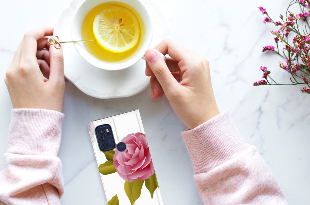 Ben je op zoek naar een uniek telefoonhoesje voor je Motorola Moto G60s? Dan ben je bij B2C Telecom aan het juiste adres! Speciaal voor jou hebben we dit prachtige Roses design in onze collectie hoesjes opgenomen. Het design wordt bedrukt op een Smart Cover en heeft een vakje aan de binnenkant voor een pasje. Het fijne aan dit hoesje is dat je het als standaard neer kunt zetten. Hierdoor geniet je nog meer als je een filmpje aan het kijken bent op je telefoon. Het hoesje wordt afgesloten door magneten aan de binnenkant. Wil je dit design hoesje nog iets extra's geven? Voeg dan gratis je naam of een quote toe! Is dit design hoesje toch niet helemaal wat je zocht? Ontwerp dan zelf een hoesje in ons ontwerpprogramma.