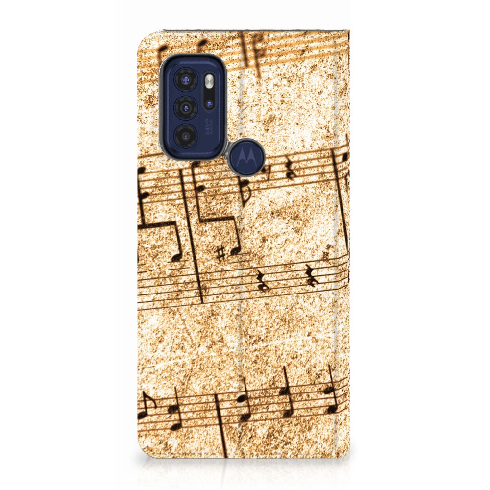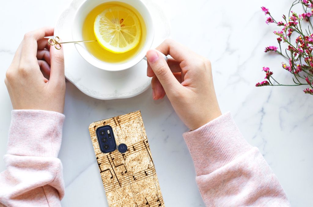 Ben je muzikant, dan is dit design hoesje met Bladmuziek wellicht echt iets voor jou. Met de intrede van nieuwe media wordt de rol van papieren bladmuziek teruggedrongen. Steeds vaker treft men 'bladmuziek' op een beeldschermapparaat, zoals een tablet-pc, e-reader of iPad aan. Gelukkig maar, want als er geen nieuwe media zouden zijn, hadden wij ook nooit onze Phone Case Designer kunnen ontwerpen. Met deze unieke ontwerpmodule kun je jouw favoriete band of artiest op je smartphone hoesje zetten, maar je kunt ook gaan voor dit prachtige design hoesje met print van bladmuziek. Het design staat op een Motorola Moto G60s Stand Case. Deze case beschermt jouw telefoon aan alle kanten en beschikt over een 1 opbergvakje en een speciale standaard. Het hoesje wordt afgesloten met een magneet aan de binnenzijde. De houder aan de binnenzijde is van TPU. Alle zijden van de stand case worden bedrukt.