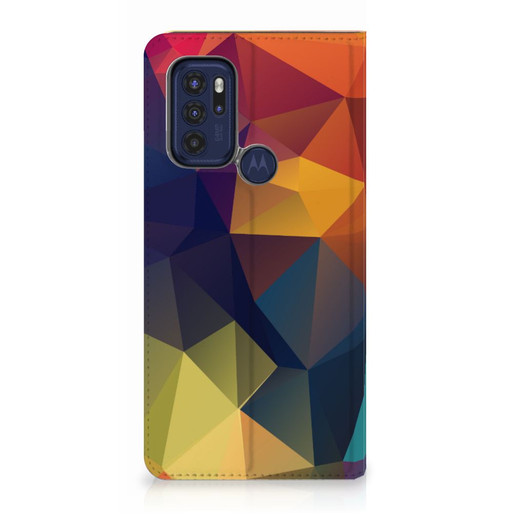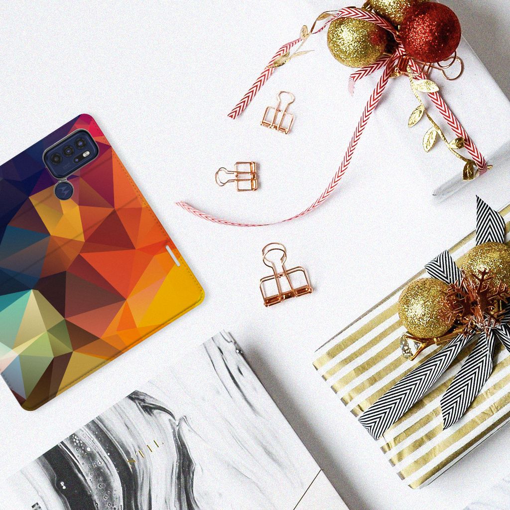 Veelkleurige driehoeken die samen eindeloze asymmetrische patronen lijken te vormen. Het is het abstracte schouwspel dat op dit fraaie hoesje voor je Motorola Moto G60s direct de aandacht trekt noemen we voor het gemak trekt noemen we voor het gemak Polygon Color. De een ziet er een berglandschap in, de ander piramides. Wat zie jij erin? Zeker is in elk geval dat de aanblik van dit fascinerende ontwerp je niet snel gaat vervelen. Het kleurige spel van lijnen en vlakken blijft eindeloos boeien en geeft jouw Stand Case een hippe en kunstzinnige uitstraling. De kracht die het lijnenspel uitstraalt, komt ook terug in het hoesje zelf. De solide hoes van PU-leer beschikt ook over een 1 pashouder en een speciale standaard. Het hoesje wordt afgesloten met een magneet aan de binnenzijde. De houder aan de binnenzijde is van TPU. Alle zijden worden bedrukt.