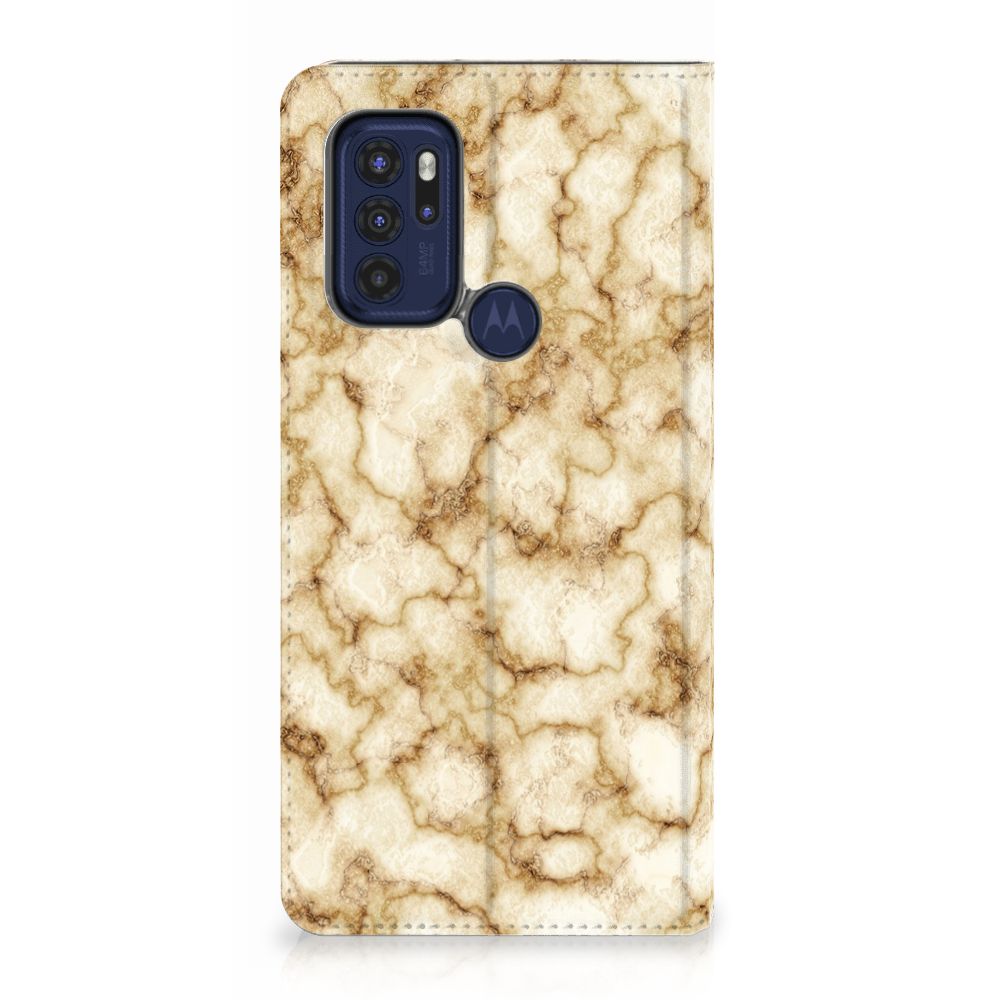 Deze Motorola Moto G60s Standcase met Marmer Goud is het waard om een blokje voor om te rijden. Dit is overigens niet nodig. Als je het hoesje met goud marmer nu bestelt heb je het zeer snel in huis. Je kunt er bij wijze van spreken thuis op gaan zitten wachten. Je hebt diverse soorten marmer. We hebben enkele fraaie kleuren op onze hoesjes gezet, zoals in dit geval het gouden marmer. Het gouden marmer wordt bedrukt op alle zijden van de stand case, die beschikt over een vakje voor pasjes of briefgeld en een magnetische sluiting aan de binnenzijde. Verder heeft de case met goud marmer een houder van TPU. De rijkheid aan kleuren en variaties in afwerking is een schitterende eigenschap van marmer. Dit stand hoesje met goud marmer heeft ook veel schitterende eigenschappen en is de ideale bescherming voor jouw smartphone.