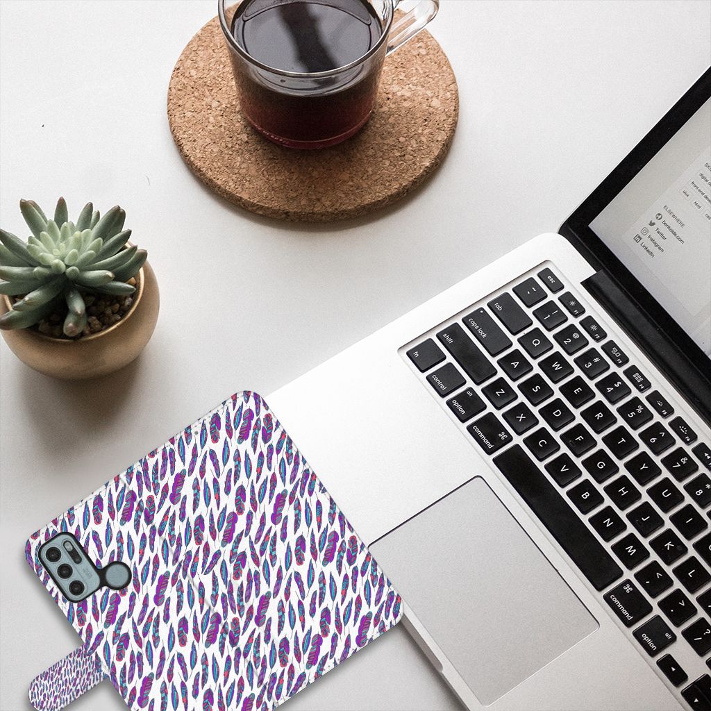 Ben je op zoek naar een uniek telefoonhoesje voor je Motorola Moto G60s? Dan ben je bij B2C Telecom aan het juiste adres! Speciaal voor jou hebben we dit prachtige Feathers Color design in onze collectie hoesjes opgenomen. Het design wordt bedrukt op een Telefoon Hoesje en heeft twee vakjes voor pasjes en een groter vakje voor briefgeld. Alle zijdes van het hoesje worden bedrukt, hoe uniek is dat? Het hoesje wordt afgesloten met een sluit lipje aan de voorkant. Wil je dit design hoesje nog iets extra's geven? Voeg dan gratis je naam of een quote toe! Is dit design hoesje toch niet helemaal wat je zocht? Ontwerp dan zelf een hoesje in ons ontwerpprogramma.