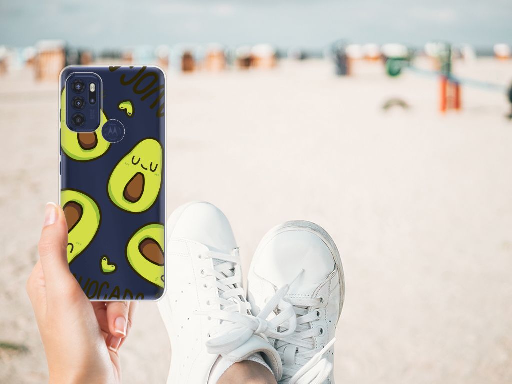 Avocado’s zijn niet alleen heel erg goed voor je, ze zijn ook super leuk op je telefoonhoesje. Dit unieke design vol schattige avocado’s zal jou en iedereen om je heen meteen opvrolijken. Nog een voordeel van dit design: deze avocado’s bederven nooit! Dit leuke Avocado Singing-ontwerp staat op een Telefoonhoesje met Naam voor de Motorola Moto G60s. Met deze vrolijke groene vruchten op je hoesje val jij zeker op. TPU is flexibel en onbreekbaar. Zo is je telefoon aan de achterkant en de randen heel goed beschermd. De case is aan de bovenkant bedrukt, de randen blijven transparant. Het TPU-hoesje is perfect te combineren met een screenprotector, zo zijn je telefoon en je beeldscherm perfect beschermd.