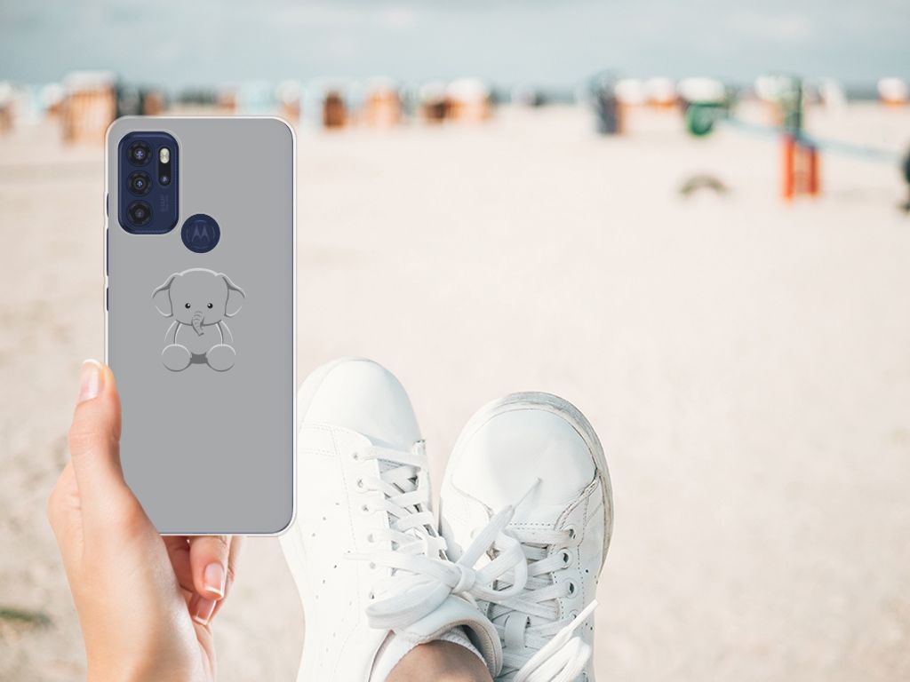 Ben je op zoek naar een uniek telefoonhoesje voor je Motorola Moto G60s? Dan ben je bij B2C Telecom aan het juiste adres! Speciaal voor jou hebben we dit prachtige Baby Olifant design in onze collectie hoesjes opgenomen. Het design wordt bedrukt op een Telefoonhoesje met Naam en is gemaakt van flexibel rubber. Het design wordt alleen aan de bovenkant van het hoesje bedrukt en de randen blijven transparant. Aan de zijkanten zijn uitsparingen gemaakt waardoor je met gemak alle knoppen en poorten kunt bedienen. Wij adviseren om dit hoesje in combinatie met een screenprotector te gebruiken voor een langere levensduur van je telefoon. Wil je dit design hoesje nog iets extra's geven? Voeg dan gratis je naam of een quote toe! Is dit design hoesje toch niet helemaal wat je zocht? Ontwerp dan zelf een hoesje in ons ontwerpprogramma.