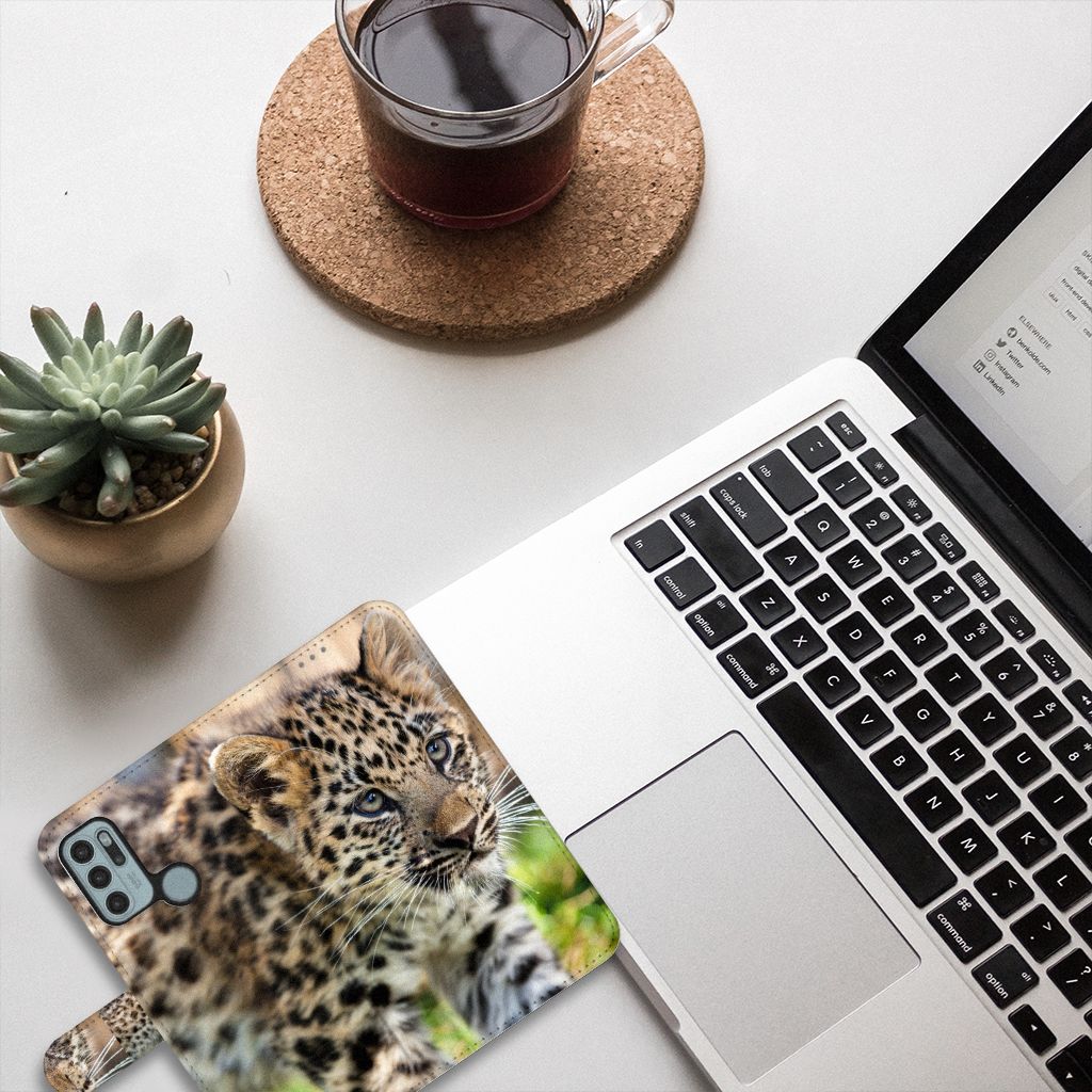 Motorola Moto G60s Telefoonhoesje met magneetsluiting Baby Luipaard