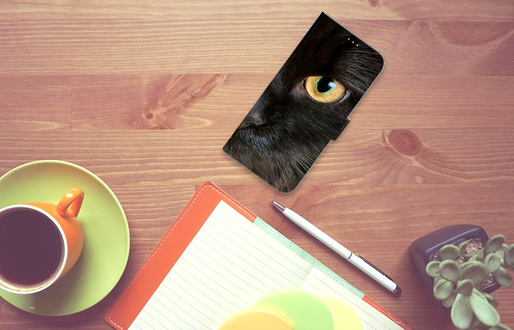 Zwarte katten zijn bijzonder innemende dieren, die een gevoel van mysterie om zich heen dragen, vandaar dat ze op zeer prominente wijze op dit design Telefoonhoesje met Pasjes staan. Hiermee valt dit design hoesje goed op en moet je zelfvertrouwen hebben om deze bij je te dragen. Dit Motorola Moto G60s hoesje is behalve bijzonder ook erg handig en sterk. Het TPU aan de binnenkant en het leer aan de buitenkant houden jouw telefoon intact wanneer je hem op de grond zou laten vallen. Bovendien kun je in dit hoesje wel 3 pasjes kwijt, zodat jij al jouw belangrijke bezittingen op dezelfde plek kunt bewaren. Op deze manier raak je jouw pasjes minder snel kwijt en heb je alles bij de hand. Mocht je nu wel een zwarte kat op jouw bookcase willen hebben, maar deze te heftig vinden, dan bieden wij de mogelijkheid om een hoesje te personaliseren met eigen foto’s.