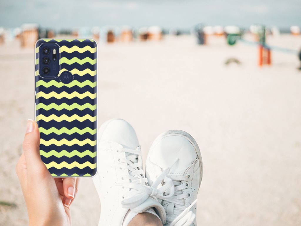 Dit Waves Yellow design hoesje met licht groene en gele golven is speciaal ontworpen voor jouw telefoon. We hebben een vleugje lichtgeel toegevoegd, zodat de case er een beetje spannender en leuker uitziet. Dit licht groene hoesje met licht groene golven ziet er oogstrelend uit. Het wordt in ons eigen magazijn bedrukt, in zeer goede kwaliteit inkt. Wij kunnen dus een zeer duurzaam hoesje met licht groene golven garanderen. Dit hele mooie Motorola Moto G60s TPU bumper heeft vele extra’s. Is dit licht groene design hoesje je op het lijf geschreven? Grijp dan nu je kans. Deze TPU case met lichtgroene golven wordt alleen aan de bovenkant bedrukt en is zeer flexibel. De randen van het hoesje met licht groene golven blijven transparant en worden niet bedrukt. Met dit hoesje past jouw telefoon altijd in je broekzak.