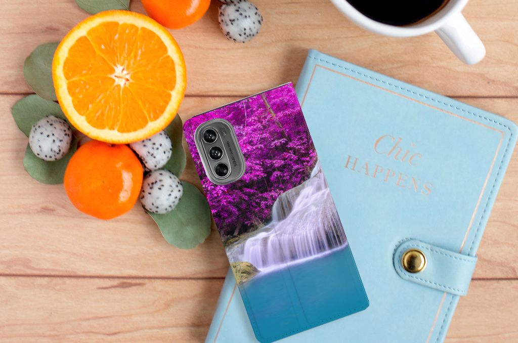 Van een waterval kun je een heel rustig gevoel krijgen, zeker als die op een Motorola Moto G62 5G Book Cover staat dat jouw smartphone perfect beschermt tegen allerlei vormen van schade zoals krassen, barsten en scheuren. In de buurt van een waterval ben je tijdens warme zomerdagen niet alleen verzekerd van aangename verkoeling, het is ook een bijzonder rustgevende ervaring. Uit onderzoek blijkt zelfs dat watervallen een helend effect hebben op allerlei aandoeningen. Extra bijzonderheid aan de stand case vormen de paarse bossen op de achtergrond. Dit smartphonehoesje beschermt jouw telefoon aan alle zijden en beschikt over een opbergvakje voor pasjes en briefgeld. De case sluit perfect af dankzij de magneten van binnen. De houder aan de binnenzijde is van TPU. Alle zijden van het hoesje worden bedrukt. Een mooiere waterval met paarse achtergrond kom je op geen enkel ander hoesje tegen.