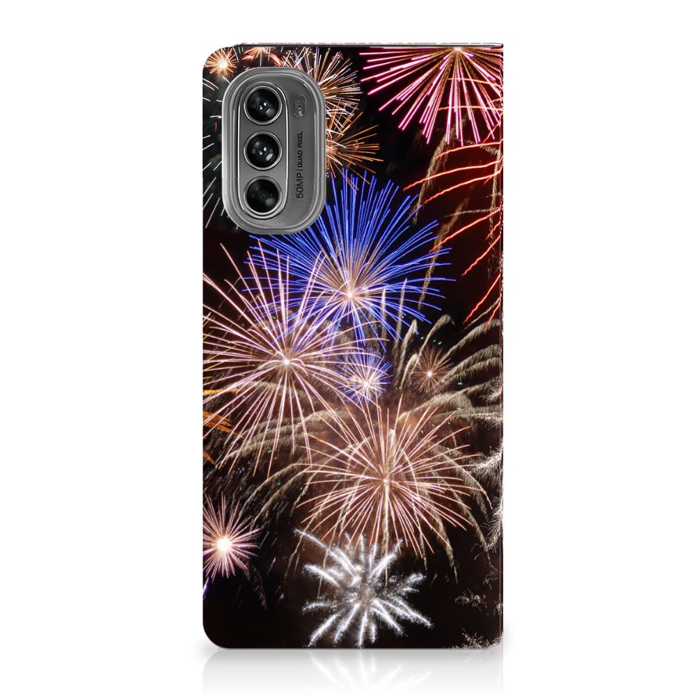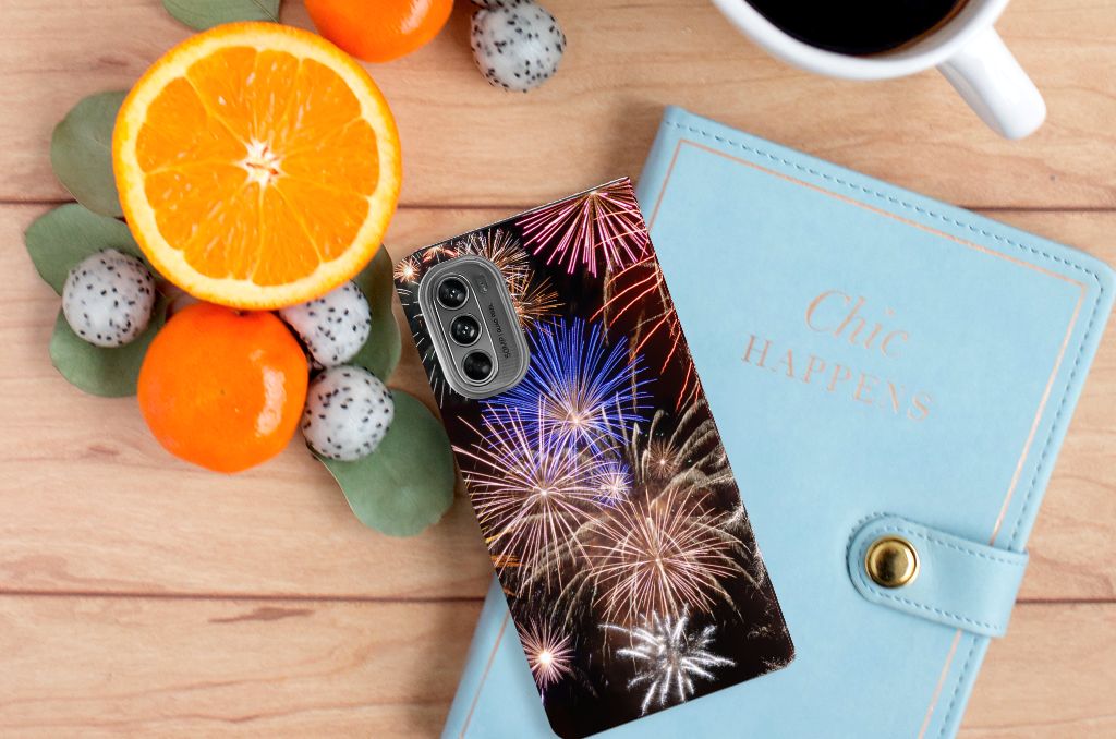 Deze Motorola Moto G62 5G Hippe Standcase levert gegarandeerd Vuurwerk op. Kijk alleen al eens naar de print van siervuurwerk, in zeer veel verschillende kleuren. Als je dit hoesje ziet kun je bijna niet geloven dat sommige gemeenten in Nederland overwegen om vuurwerk te verbieden. Er gebeuren weliswaar ongelukken mee, maar zoiets schitterends als op deze stand case met vuurwerk wil je toch gewoon niet missen. Bovendien beschermt dit hoesje jouw smartphone aan alle kanten. Alle zijden van deze case worden bedrukt en met een speciale standaard is het erg prettig om filmpjes te bekijken. De case wordt aan de binnenzijde met een magneet afgesloten en de houder aan de binnenzijde is van TPU. Onder alle omstandigheden zal deze case met 1 opbergvakje perfect functioneren, ook als je met nieuwjaar vuurwerk aan het afsteken bent. Zorg dan overigens wel dat je zelf ook voldoende afgeschermd bent van het vuurwerk.