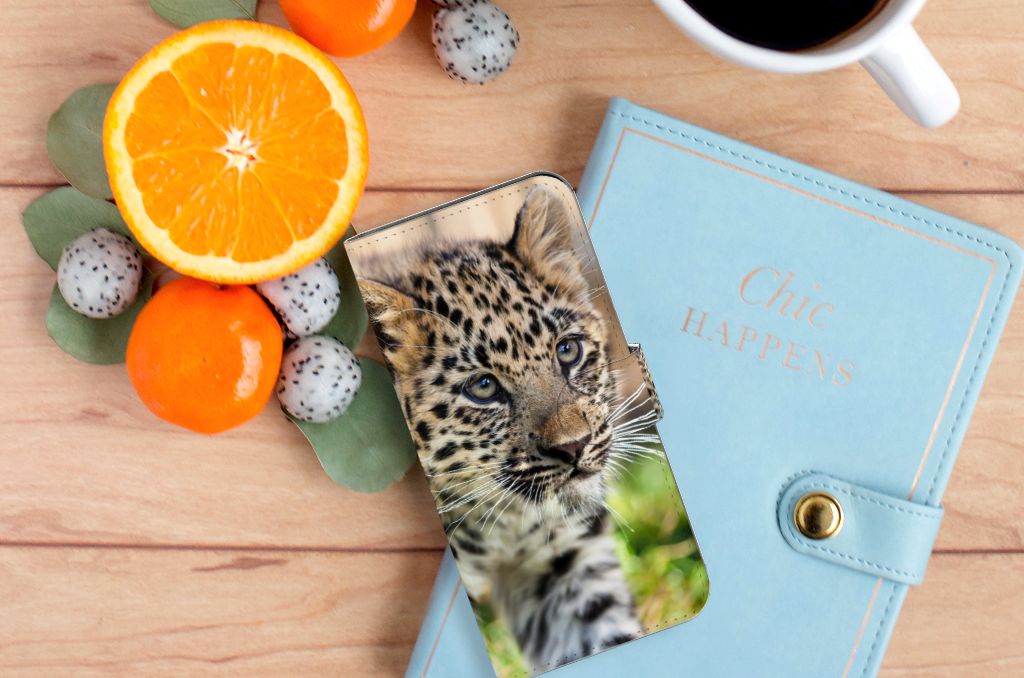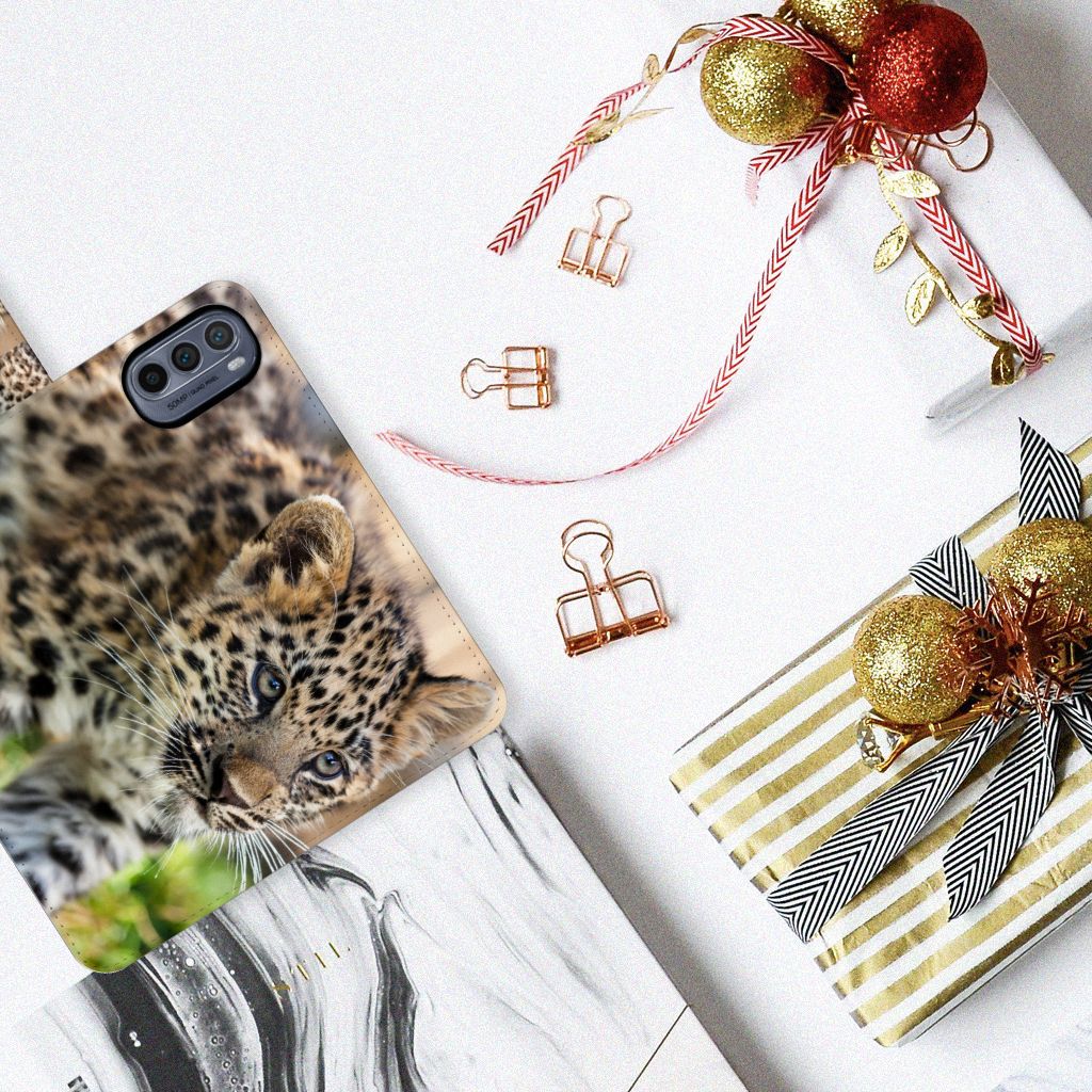 Motorola Moto G62 5G Telefoonhoesje met magneetsluiting Baby Luipaard