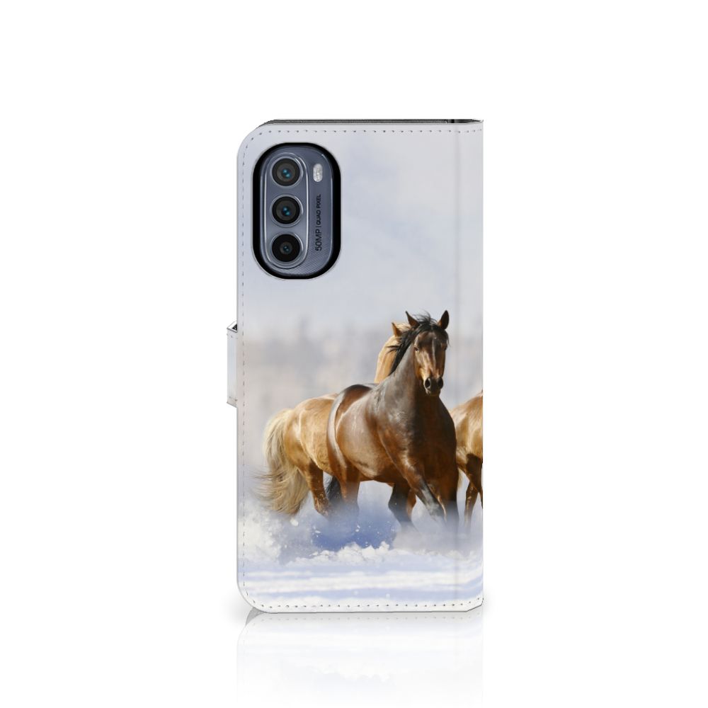 Motorola Moto G62 5G Telefoonhoesje magneetsluiting met lipje Paarden