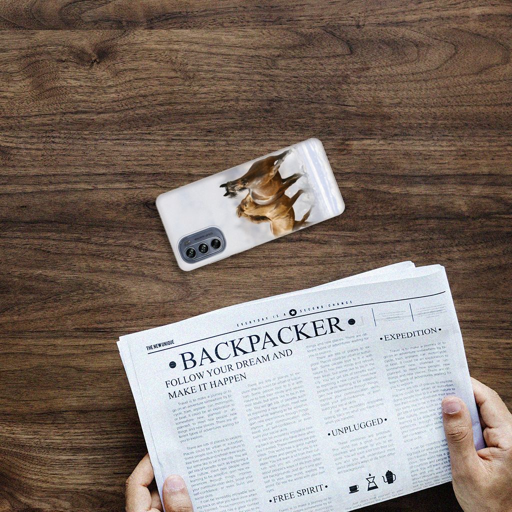 Voor de paardenliefhebbers onder ons hebben we onze collectie uitgebreid met dit design hoesje met print van paarden. Vroeger hield de mens vooral werkpaarden, inmiddels hebben we vriendschap gesloten met het paard. Vandaar dat het ook een favoriet dier is op onze smartphonehoesjes, zoals deze tpu case. Een TPU Hoesje voor de Motorola Moto G62 5G met Paarden is niet alleen super mooi en chique, maar ook nog eens zeer flexibel. Verder is de case schokabsorberend en heeft het opstaande randen. Zie je liever je eigen paard terug op een hoesje. Dat kan! Door zelf een uniek hoesje te ontwerpen, met eigen foto’s en teksten. De TPU case wordt aan de bovenzijde bedrukt, de zijkanten blijven transparant.