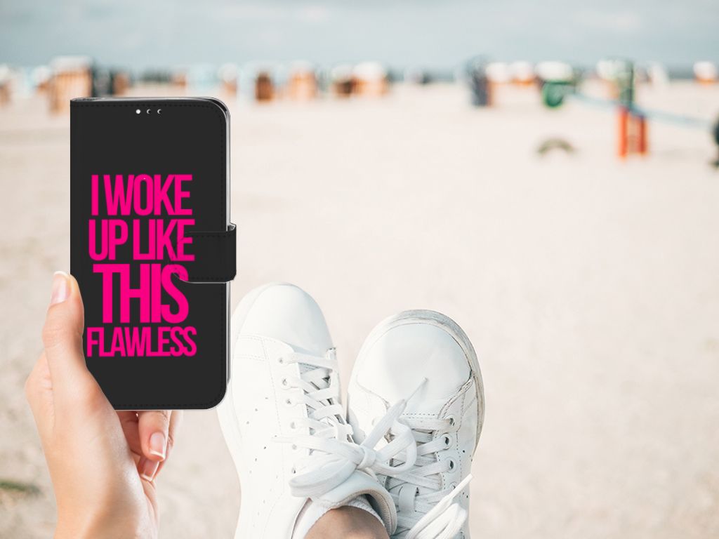 Met dit zwarte Motorola Moto G7 | G7 Plus Hoesje met naam met paarse tekst heb je een geweldige bescherming van je smartphone in handen. Dit zwarte hoesje met Woke Up tekst is een must voor jouw smartphone. Met dit design hoesje tekst val je ook zeker op. Je weet ook zeker dat het hoesje exclusief is. Het design is gemaakt door B2C Telecom. Het hoesje heeft verschillende vakjes en is aan alle zijden bedrukt. Ook het lipje aan de buitenkant kan worden bedrukt. De houder is van TPU, de buitenzijde van PU-leer. We willen je er ook op wijzen dat je zelf een hoesje kunt ontwerpen, met eigen beelden en teksten. Met onze Phone Case Designer kun je zelfs opvallende effecten, patronen en clip arts aan het ontwerp toevoegen.