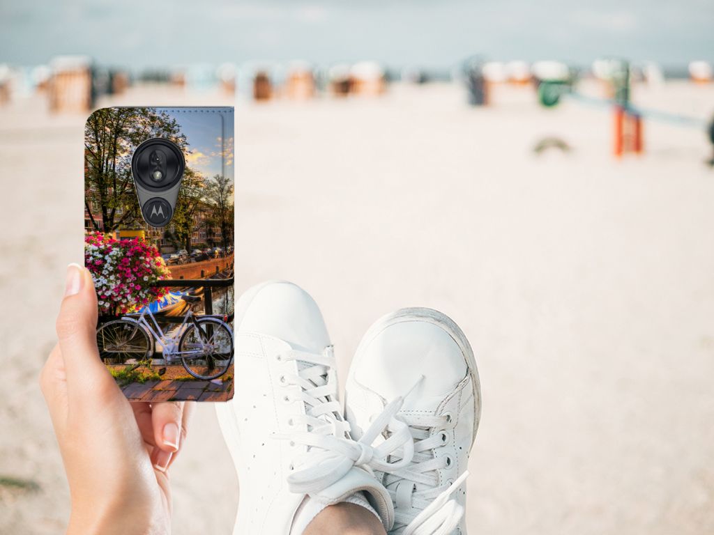 Amsterdam is meer dan ooit een toeristische trekpleister. Een bezoek aan de hoofdstad is niet compleet als er geen bezoek is gebracht aan de Amsterdamse Grachten. Ze zijn een symbool van de stad en hebben een enorme culturele en historische waarde. Daarom kunnen ze natuurlijk niet ontbreken in onze collectie design hoesjes. Dit schitterende design hoesje met Amsterdamse grachten tref je enkel en alleen aan bij B2C Telecom. De ondergaande zon en de fleurige en fraaie bloempakketten zorgen voor een prachtig totaalplaatje. Amsterdam is wereldberoemd om haar prachtige grachten uit de zeventiende eeuw. Dit smartphone hoesje is hier een eerbetoon aan. Het design staat op een stand case. Deze Motorola Moto G7 Play Book Cover beschermt jouw telefoon aan alle kanten en beschikt over een 1 opbergvakje en een speciale standaard. Het hoesje wordt afgesloten met een magneet aan de binnenzijde. De houder aan de binnenzijde is van TPU. Alle zijden van de stand case worden bedrukt.