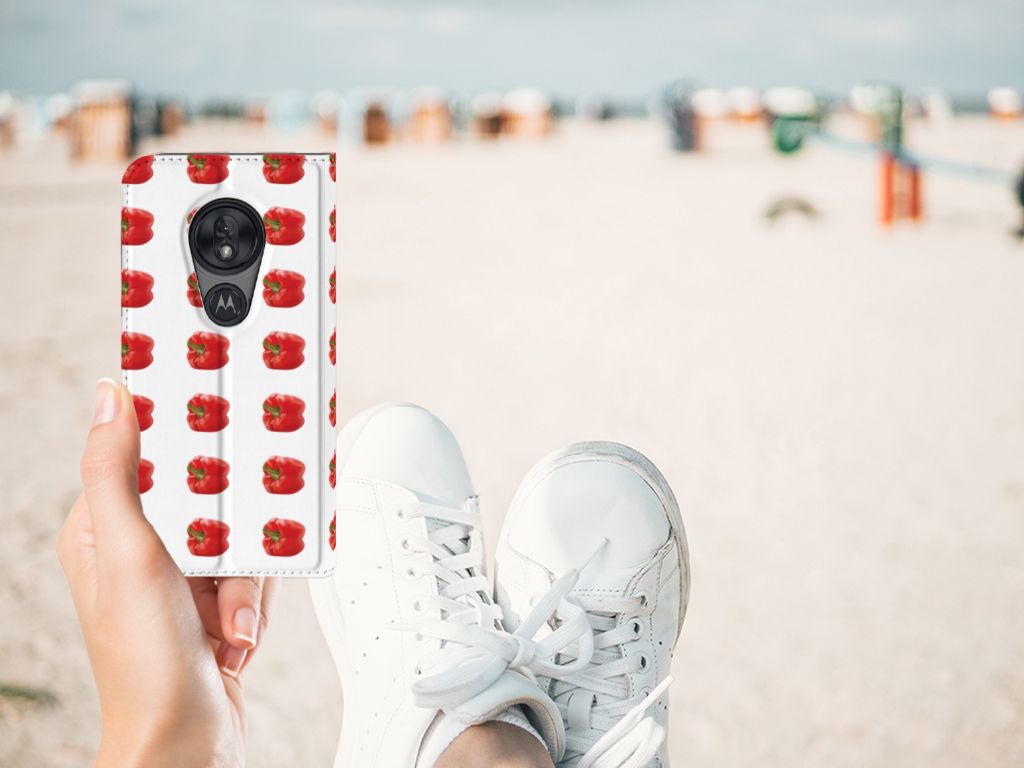 Er zit pit in jouw Motorola Moto G7 Play Flip Style Cover dankzij dit design met rode paprika’s. Paprika’s zijn er in allerlei kleuren en vormen en ze hebben gemeen dat ze heel erg gezond zijn. De rode paprika’s op deze case staan op een grijs met witte geblokte achtergrond en vormen een opvallende verschijning. Heb jij ooit iemand in je nabije omgeving rond zien lopen met een design hoesje met rode paprika’s? Waarschijnlijk niet. Dit stand hoesje met rode paprika’s beschermt jouw telefoon aan alle zijden en beschikt over een opbergvakje voor een pasje of briefgeld. De case sluit perfect af met de magneet aan de binnenzijde. Zeker weten dat je met dit hoesje met rode paprika’s een smartphone accessoire te pakken hebt waarmee je jezelf in de schijnwerpers zet. De houder aan de binnenzijde van de stand case met rode paprika’s is van TPU. Als je andere kleuren paprika’s op je hoesje wilt, raden we je aan ons assortiment design hoesjes te bekijken of zelf een hoesje te ontwerpen.