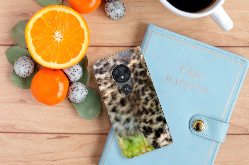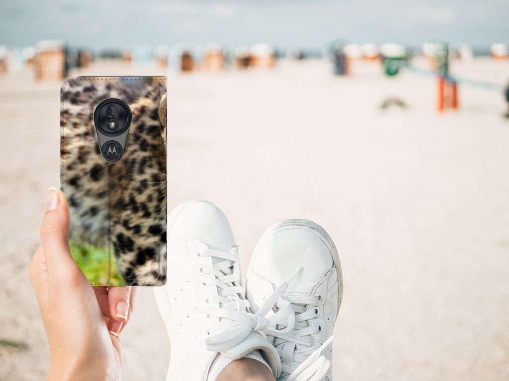 De luipaard is een grote, gespierde katachtige met korte, krachtige poten en een lange staart. Aangezien het op dit hoesje een baby luipaard betreft, zijn deze eigenschappen nog niet volledig tot wasdom gekomen. De kop van de luipaard is breed en een beetje rond van vorm met kleine, ronde oren. De snuit is middelgroot, met krachtige kaken en lange snorharen. De vacht van een luipaard is bedekt met veel zwarte vlekken. Kies je voor dit design hoesje, dan zal er van vlekken op jouw smartphone nooit en te nimmer sprake zijn. Het stoere en tegelijkertijd aandoenlijke design staat op een stand case. Een Motorola Moto G7 Play Hoesje maken beschermt jouw telefoon aan alle kanten en beschikt over een 1 opbergvakje en een speciale standaard. Het hoesje wordt afgesloten met een magneet aan de binnenzijde. De houder aan de binnenzijde is van TPU.