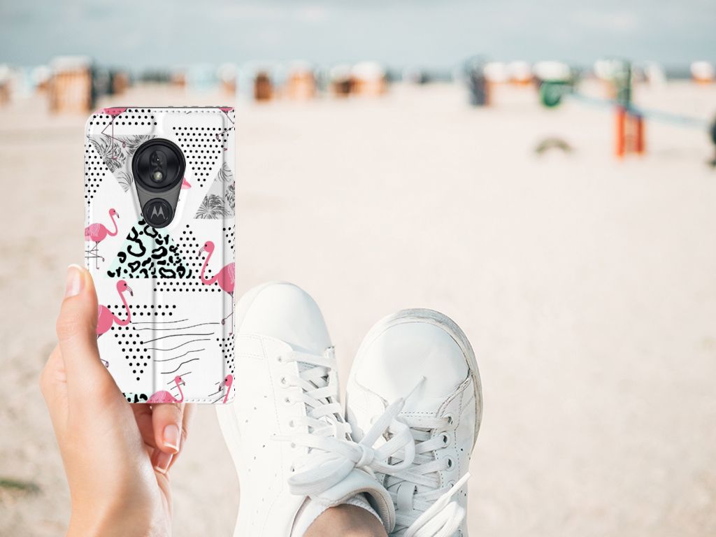Een Motorola Moto G7 Play Hoesje maken met Flamingo Triangle is in vele opzichten bijzonder. De rode flamingo op het hoesje komt oorspronkelijk uit het Caraïbische gebied. Stel dat je in deze regio vakantie viert, dan val je zonder meer op met dit hoesje met flamingo’s en driehoeken. Deze stand case biedt bescherming voor alle zijden van je telefoon. Jouw smartphone ligt goed opgeborgen in de TPU houder aan de binnenzijde en in dit gedeelte van het hoesje met flamingo’s en driehoeken zit de magnetische sluiting. Ook de palmbomen op deze stand case bieden het ultieme vakantiegevoel. De stand case met flamingo’s en driehoeken heeft vakjes voor pasjes en is op maat gemaakt.