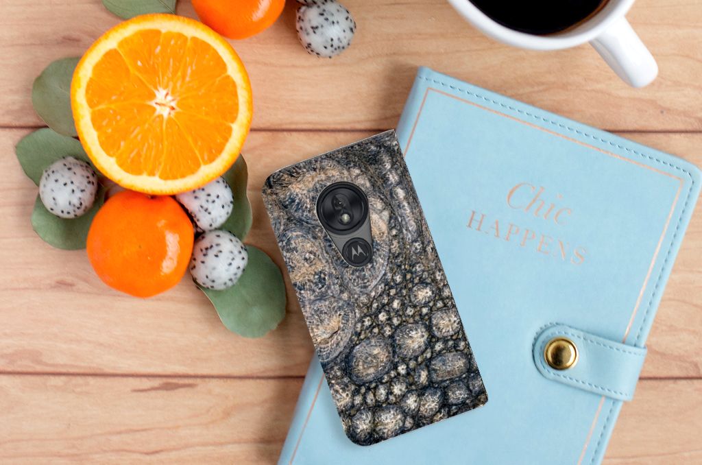 De dikke huid van een krokodil is zeer gevoelig. Met deze Motorola Moto G7 Play Hoesje maken met Krokodillenprint hoef je je geen zorgen te maken dat je smartphone schade oploopt. De krokodillenprint zetten we op een stand case op het moment dat jij je bestelling plaatst. Hierdoor krijgt jouw telefoon een print van krokodillen van zeer hoge kwaliteit. We bedrukken jouw gehele stand case met de vlekken van de krokodil. Je bankpas of creditcard kun je stoppen in het vakje aan de binnenkant van het telefoonhoesje met krokodillenprint. Met hun zintuigen kunnen krokodillen hitte, kou, aanraking, waterstroming en chemische stoffen detecteren. Jouw stand hoesje met krokodillenprint beschermt perfect tegen invloeden van buitenaf.