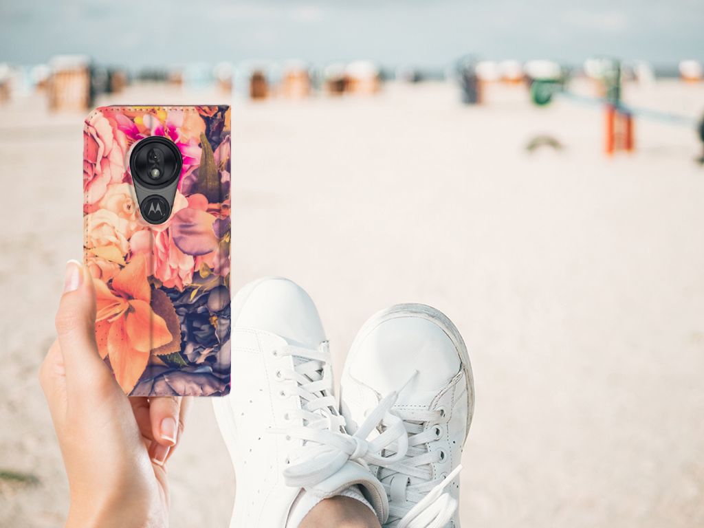 Dit Bosje Bloemen doet een mens en zijn smartphone goed. De oranje, paarse en roze bloemen op deze Motorola Moto G7 Play Smart Cover geven jouw smartphone een zeer sierlijke uitstraling. Je wordt er ook meteen vrolijker van als je aan het appen, mailen of aan het bellen bent. Valt dan je telefoon op de grond, dan zal er dankzij de stand case met oranje, paarse en roze bloemen geen schade ontstaan. Onze stand cases met oranje, paarse en roze bloemen bieden de allerbeste bescherming en zijn heel praktisch, wat blijkt uit onder meer het vakje aan de binnenkant en de handige standaard waarmee je de smartphone rechtop op tafel neer kunt zetten. De oranje, paarse en roze bloemen passen goed op alle zijden van de case. Op deze stand case van leer en TPU (houder aan de binnenkant) is het ook mogelijk je eigen ontwerp te zetten. In no time maak je zelf een stand case met daarop foto’s van jouw favoriete bloemen.