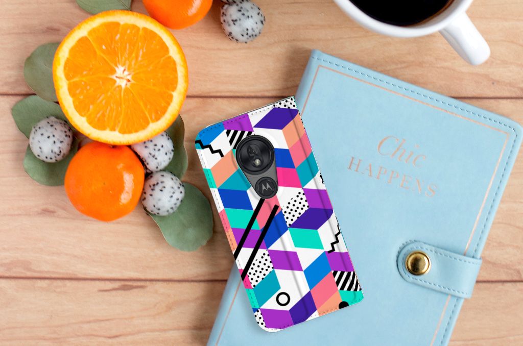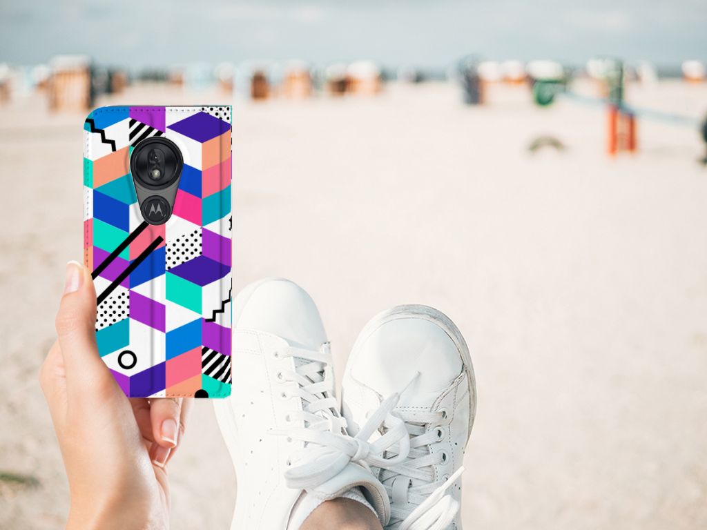 Stand Case Motorola Moto G7 Play Design Blokken Kleurrijk