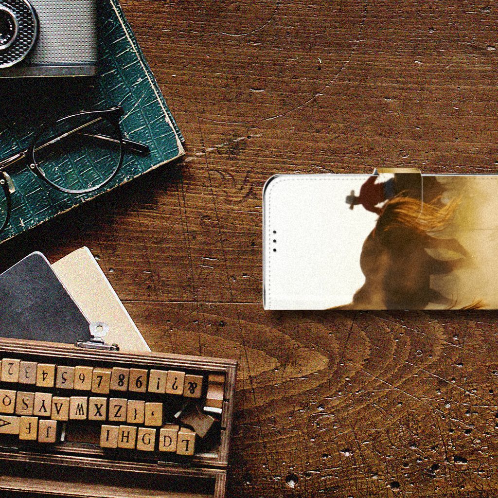 Voor de paardenliefhebbers onder ons hebben we onze collectie uitgebreid met dit design hoesje met print van een cowboy met paarden. Vroeger hield de mens vooral werkpaarden, inmiddels hebben we vriendschap gesloten met het paard. Vandaar dat het ook een favoriet dier is op onze smartphonehoesjes, zoals deze boekhoesjes. Dit Telefoonhoesje met Pasjes met paarden is niet alleen super mooi en chique, het sluit ook nog perfect dankzij het lipje aan de buitenzijde. Verder heeft de case een TPU houder aan de binnenzijde en houders voor pasjes en briefgeld. Zie je liever je eigen paard terug op een hoesje voor jouw Motorola Moto G7 Power? Dat kan! Door zelf een uniek hoesje te ontwerpen, met eigen foto’s en teksten. Het boekhoesje met paarden wordt aan alle zijden bedrukt.