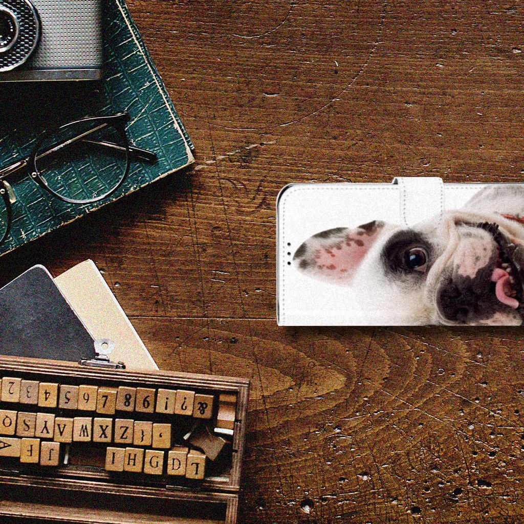 Honden zijn het favoriete dier van de mens, het is daarom alleen maar logisch om die op een telefoonhoesje te plaatsen. En op dit design hoesje staat deze schattige Franse Buldog. Maar misschien heb jij zelf wel een hond en wil je die liever op het hoesje terugzien? Met onze telefoonhoesjes ontwerper is dat geen enkel probleem. Voor dezelfde prijs kun je elke foto die je wilt op het boekhoesje laten zetten. Je kunt hierbij zelfs de naam van jouw hond of een ander stukje tekst laten drukken. Zo eindig je met een Telefoonhoesje met Pasjes wat volledig uniek en naar jouw smaak is.