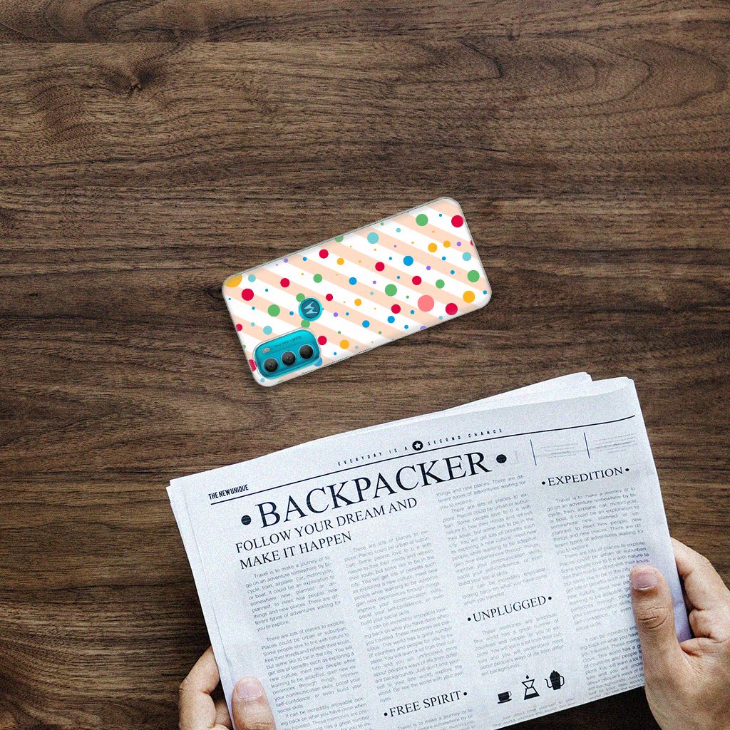 Een Motorola Moto G71 5G TPU bumper met verschillende kleuren stippen is een schitterende bescherming van jouw smartphone. De tpu case met het design Dots in alle kleuren van de regenboog komt voor jou als geroepen. Maak je geen gebruik van dit zeer mooie hoesje, dan kan het met jouw smartphone een beetje beroerd aflopen. Deze mooie tpu case met verschillende soorten klompen in verschillende kleuren is zo’n beetje de meest flexibele case die er bestaat. Het hoesje met stippen zorgt voor een goede bescherming van je smartphone, vooral aan de achterzijde en zijkanten. Met een tpu hoesje met stippen in verschillende kleuren blijft jouw gsm volledig in tact. Heb je liever een tpu case met stippen in andere opvallende kleuren? Ontwerp dan zelf een tpu case met je eigen foto’s en teksten! De case wordt aan de achterzijde bedrukt met klompen, de zijkanten blijven doorzichtig.