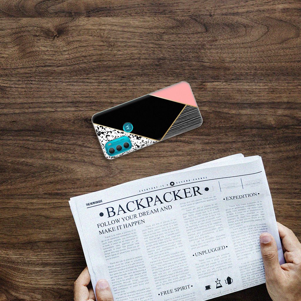 - Met een tpu-siliconen hoesje met roze, zwarte en witte vlakken blijft jouw telefoon in tact.