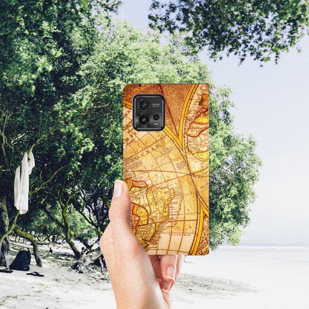 Met deze Motorola Moto G72 Book Cover met opdruk van een Kompas kun jij veilig elke richting op die je wilt, zonder dat je smartphone schade oploopt. Erg handig. Een kompas werkt overigens met magnetisme. Dat betekent dat een kompas af gaat wijken als die te dicht in de buurt van metaal of een andere magnetische bron komt. Deze stand case met kompas heeft ook een magneet aan de binnenzijde die ervoor zorgt dat de case niet zomaar open kan klappen. Onze stand cases met kompas bieden de allerbeste bescherming en zijn heel praktisch, wat blijkt uit onder meer het vakje aan de binnenkant en de standaard. Het kompas komt ook op alle zijden van de case te staan. Op deze stand case van leer en TPU (houder aan de binnenkant) kun je trouwens ook in no time zelf foto’s en teksten zetten.