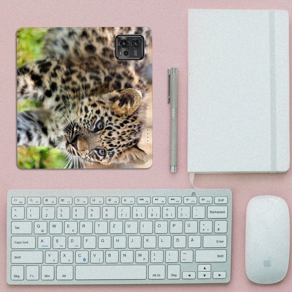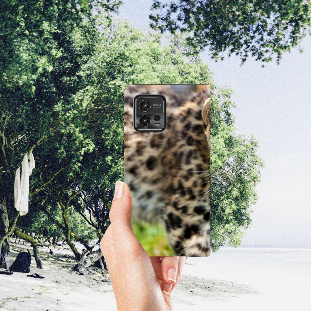 De luipaard is een grote, gespierde katachtige met korte, krachtige poten en een lange staart. Aangezien het op dit hoesje een baby luipaard betreft, zijn deze eigenschappen nog niet volledig tot wasdom gekomen. De kop van de luipaard is breed en een beetje rond van vorm met kleine, ronde oren. De snuit is middelgroot, met krachtige kaken en lange snorharen. De vacht van een luipaard is bedekt met veel zwarte vlekken. Kies je voor dit design hoesje, dan zal er van vlekken op jouw smartphone nooit en te nimmer sprake zijn. Het stoere en tegelijkertijd aandoenlijke design staat op een stand case. Een Motorola Moto G72 Hoesje maken beschermt jouw telefoon aan alle kanten en beschikt over een 1 opbergvakje en een speciale standaard. Het hoesje wordt afgesloten met een magneet aan de binnenzijde. De houder aan de binnenzijde is van TPU.