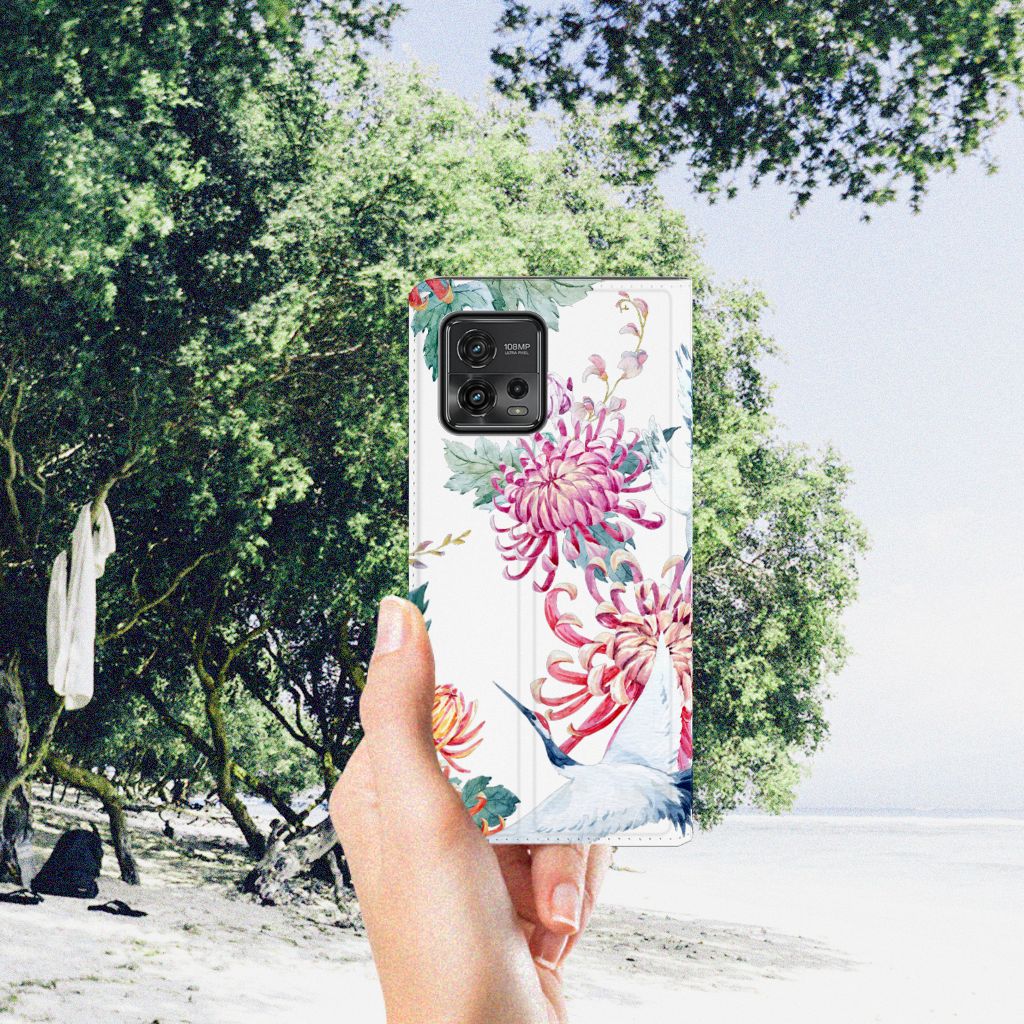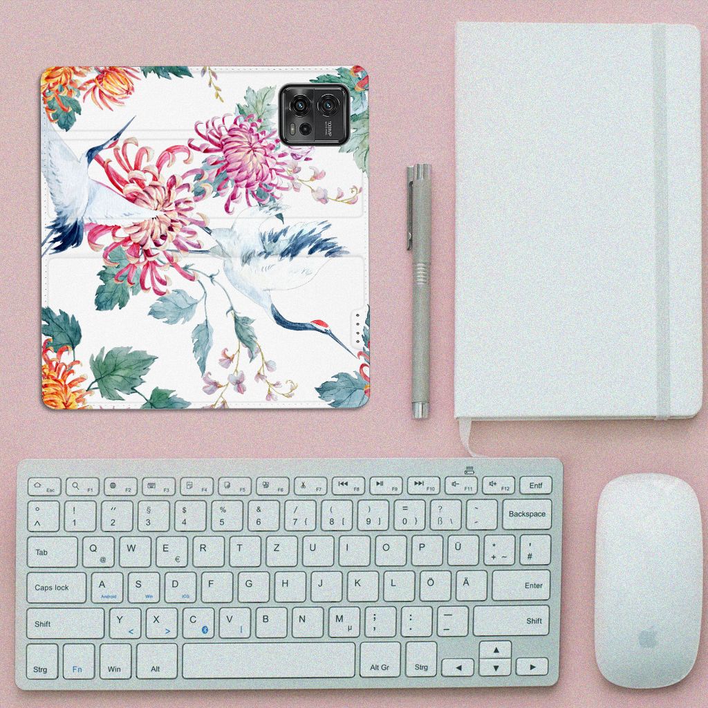 Verspreid over de hele wereld leven 19 soorten ooievaars. De spanwijdte – dat is de afstand van vleugeltip tot vleugeltip – van een volwassen ooievaar kan 2.50 meter bedragen. De gebieden waarin de ooievaar broedt, liggen in heel Europa, het Midden-Oosten, West- en Centraal-Azië en Noordwest-Afrika. Het ideale leefgebied van de ooievaar is een half open tot open landschap met veel afwisseling in grondgebruik en begroeiing. De begroeiing op dit design hoesje, in allerlei verschillende kleuren, zal niet alleen voor de ooievaars fraai zijn. Jij zult er zelf ook heel vrolijk van worden. Het in het oog springende design staat op een Hoesje maken. Deze case beschermt jouw Motorola Moto G72 aan alle kanten en beschikt over een 1 opbergvakje en een speciale standaard. Het hoesje wordt afgesloten met een magneet aan de binnenzijde. De houder aan de binnenzijde is van TPU. Alle zijden van de stand case worden bedrukt.