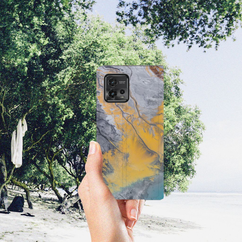 Deze Motorola Moto G72 Standcase met Marble Blue Gold is het waard om een blokje voor om te fietsen. Dit is echter helemaal niet nodig. Als je het hoesje met marmer blauw met goud nu bestelt heb je het supersnel in huis. Je kunt er bij wijze van spreken voor de brievenbus op blijven wachten. Je hebt diverse marmersoorten in veel verschillende kleuren. We hebben enkele mooie kleuren op design hoesjes gezet, zoals in dit geval marmer blauw met goud. Het marmer wordt bedrukt op alle zijden van de stand case, die beschikt over een vakje voor pasjes of briefgeld en een magnetische sluiting aan de binnenzijde. Verder heeft de case met marmer blauw met goud een houder van TPU. De rijkheid aan kleuren en variaties in afwerking is een fraaie eigenschap van marmer. Dit stand hoesje met marmer blauw met goud heeft ook veel schitterende eigenschappen en is de ideale bescherming voor jouw smartphone.