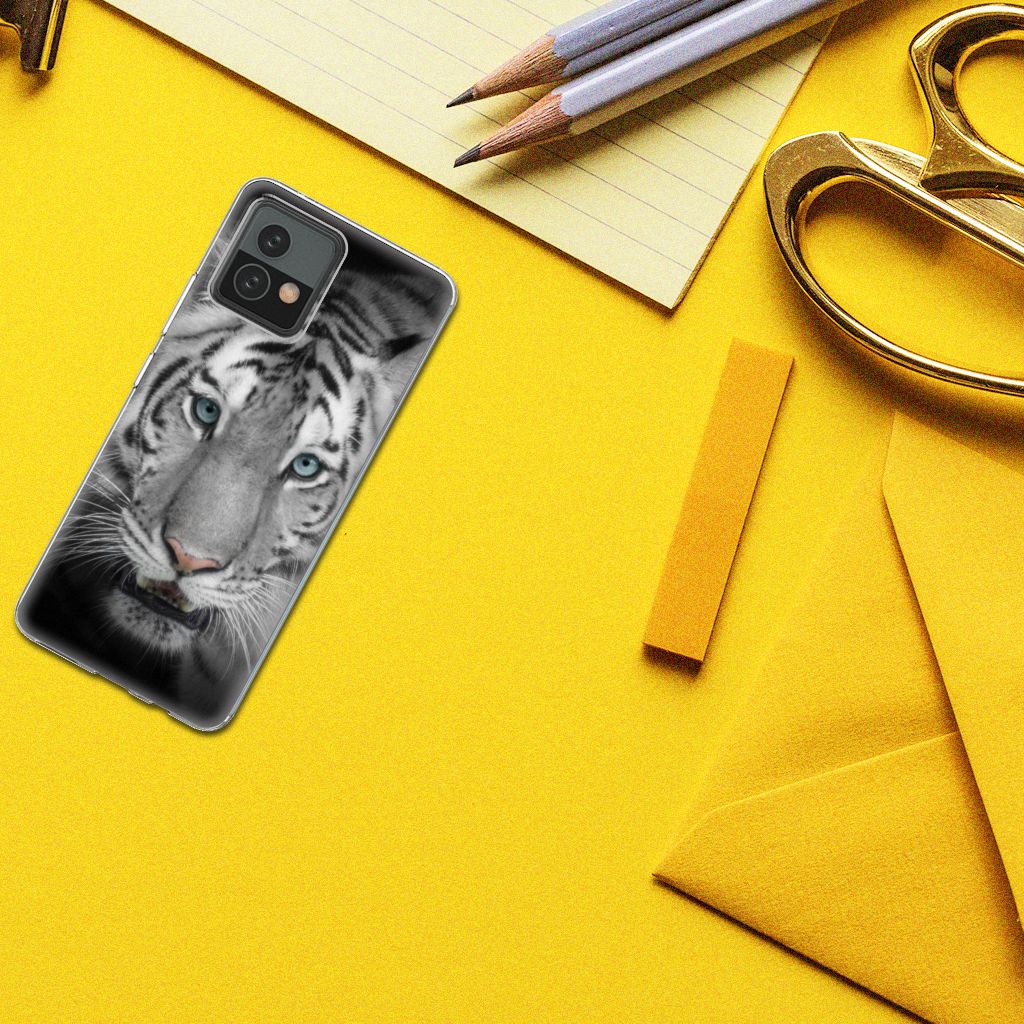 Omdat de Witte Tijger zo bijzonder is, zijn wij bereid deze voor zeer lage kosten op een tpu case te zetten. Dit kunnen we zo goedkoop doen omdat we het drukwerk in eigen beheer doen. Witte tijgers leefden lange tijd in de bossen van India, Bangladesh, Nepal, Bhutan en China en kunnen wel 257 kilo wegen. Dit zwaargewicht kunnen we bedrukken op verschillende soorten hoesjes, zoals deze tpu cases. Deze Motorola Moto G72 TPU Hoesje kan exclusief in het bezit van jou komen. Zeker als je er zelf nog unieke teksten en/of beelden aan toevoegt. Het tpu hoesje is zeer flexibel en wordt alleen aan de bovenzijde bedrukt. De randen van dit flexibele hoesje blijven doorzichtig. Tegenwoordig zijn witte tijgers alleen in gevangenschap te bewonderen. Jij zorgt voor een goede bescherming van je smartphone met dit design hoesje met witte tijger.