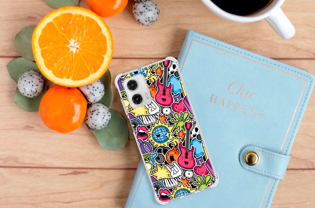 Ben je op zoek naar een uniek telefoonhoesje voor je Motorola Moto G73? Dan ben je bij B2C Telecom aan het juiste adres! Speciaal voor jou hebben we dit prachtige Punk Rock design in onze collectie hoesjes opgenomen. Het design wordt bedrukt op een Anti Shock Bumper Case en is gemaakt van flexibel rubber. Het hoesje is perfect voor de actieve smartphonegebruiker door de opstaande randen/hoeken. Denk aan mensen die veel sporten, reizen of wandelen en net iets meer zekerheid willen als het op hun geliefde telefoon aankomt. Het design wordt alleen aan de bovenkant van het hoesje bedrukt en de randen blijven transparant. Aan de zijkanten zijn uitsparingen gemaakt waardoor je met gemak alle knoppen en poorten kunt bedienen. Wij adviseren om dit hoesje in combinatie met een screenprotector te gebruiken voor een langere levensduur van je telefoon. Wil je dit hoesje nog iets extra's geven? Voeg dan gratis je naam of een quote toe! Is dit design hoesje toch niet helemaal wat je zocht? Ontwerp dan zelf een hoesje in ons ontwerpprogramma.